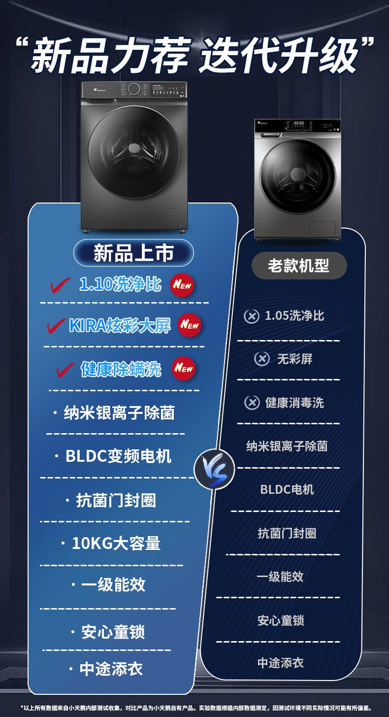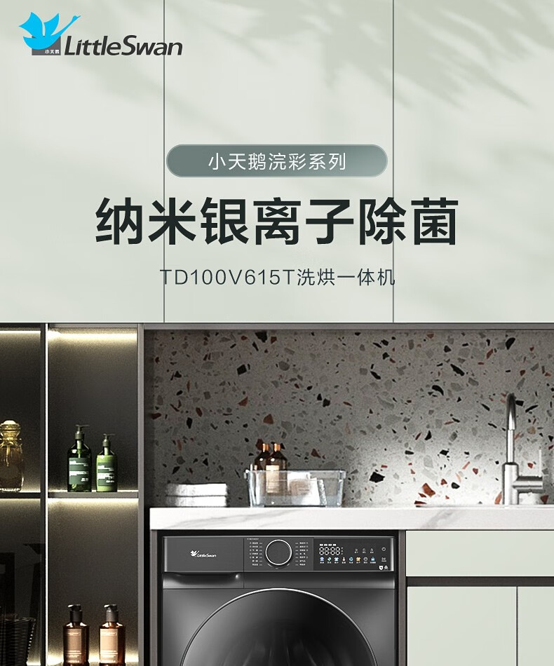 小天鹅(LittleSwan)洗衣机滚筒洗烘一体带烘干全自动 10公斤大容量银离子除菌彩屏以旧换新 1.1洗净比TD100V615T