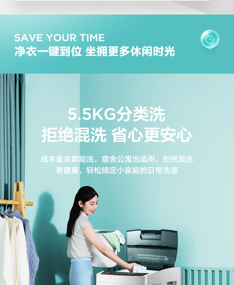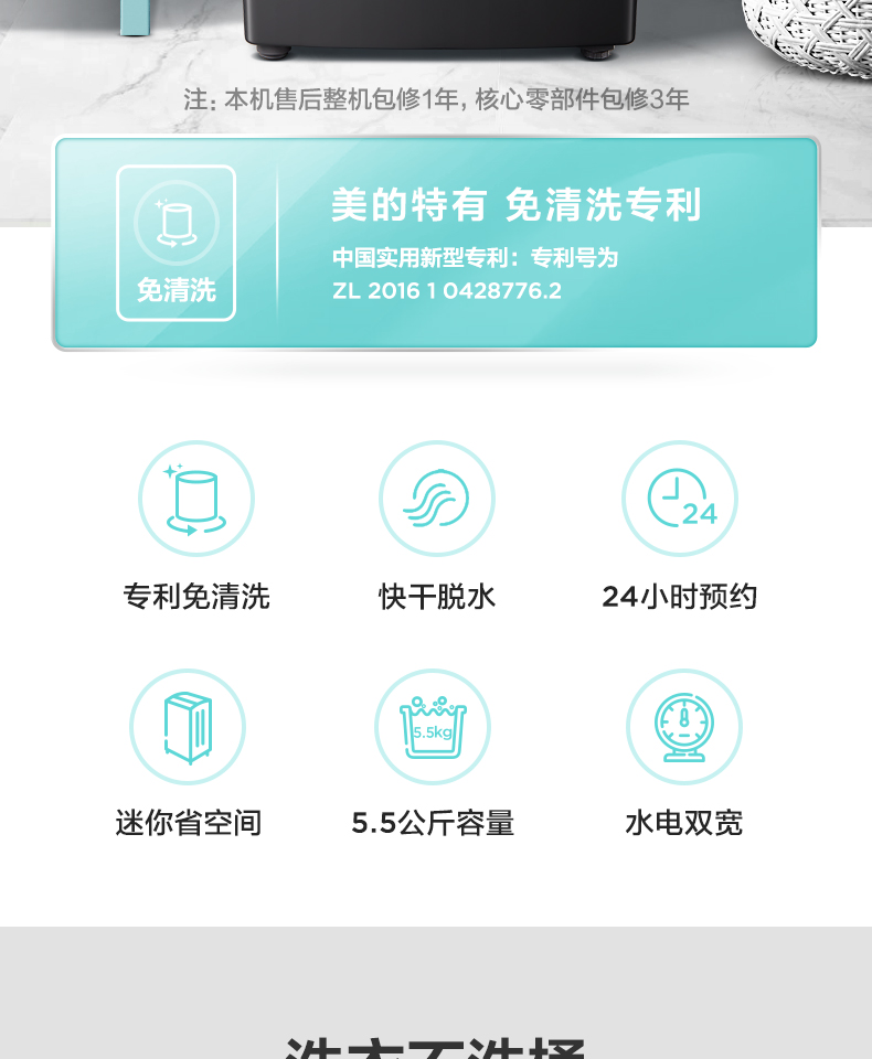 美的(Midea)波轮洗衣机全自动 5.5公斤 迷你洗衣机 品质电机 内桶自清洁 租房宿舍专用 以旧换新