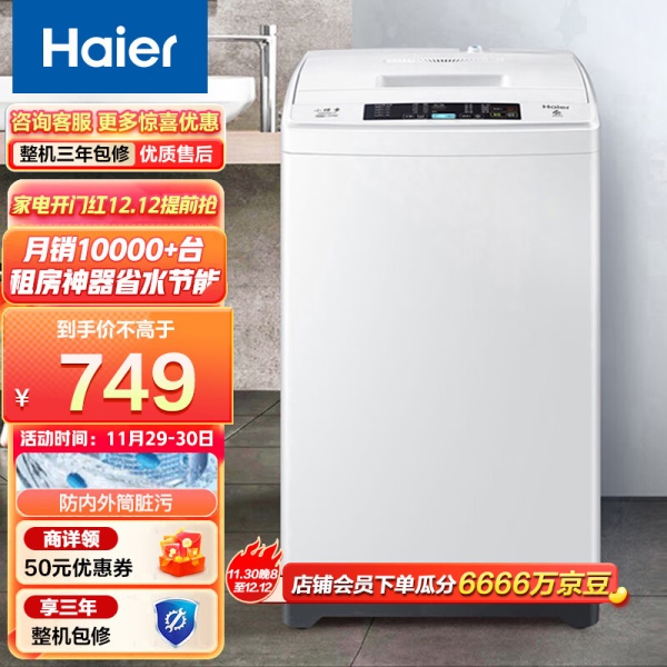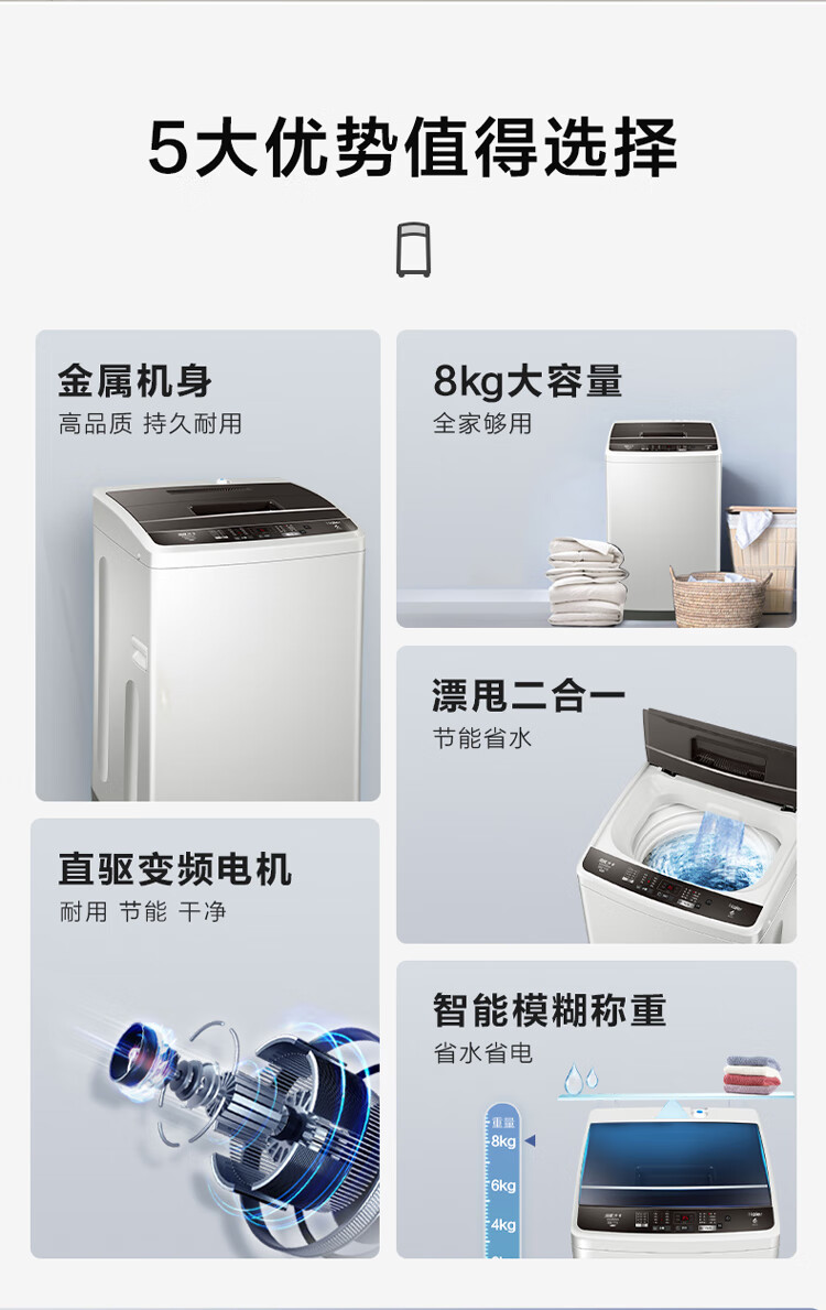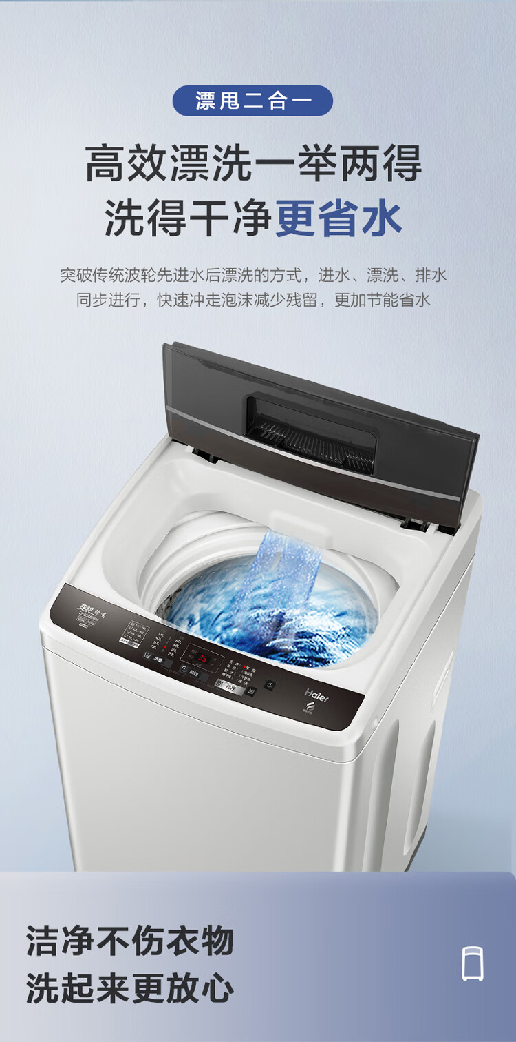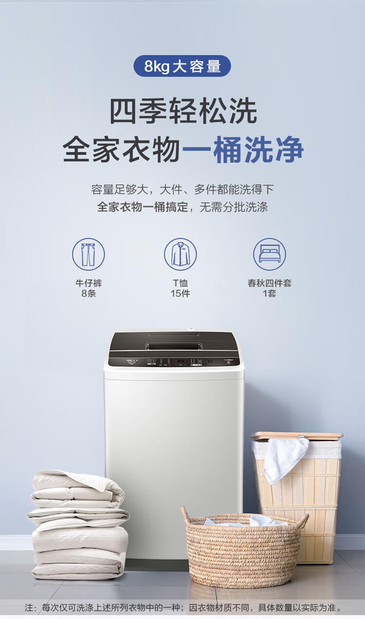 海尔(Haier) 波轮洗衣机全自动家电 以旧换新 脱水机 原厂品质 直驱变频强劲平稳 8公斤