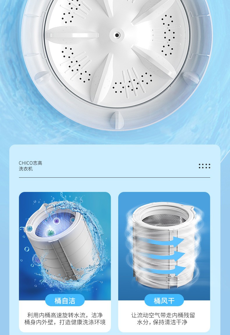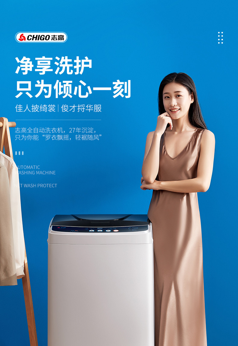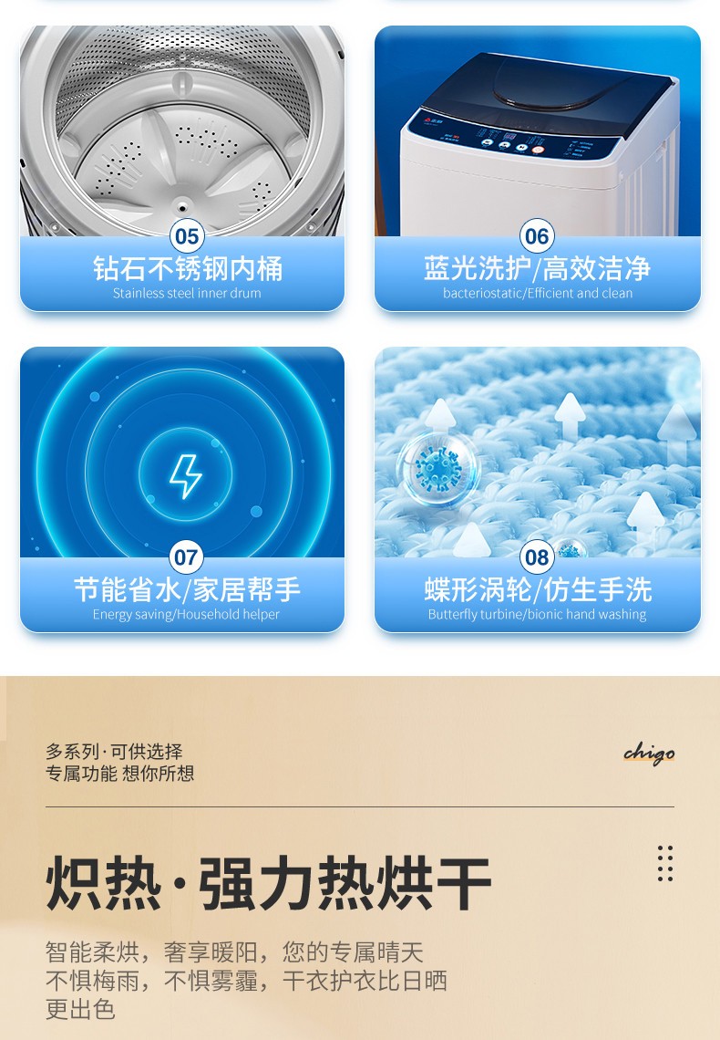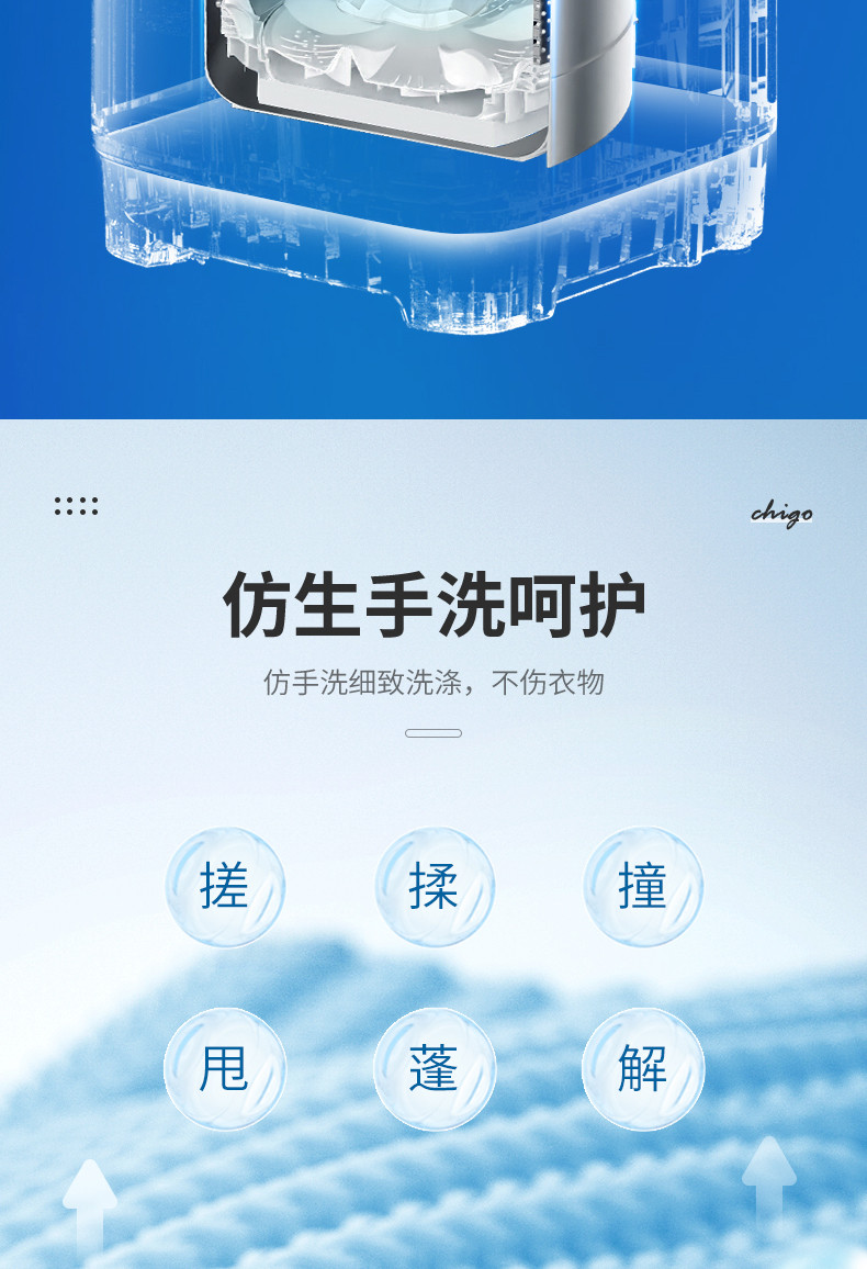 志高(CHIGO)全自动洗衣机 洗烘一体 大容量 智能波轮洗脱一体机 带风干功能