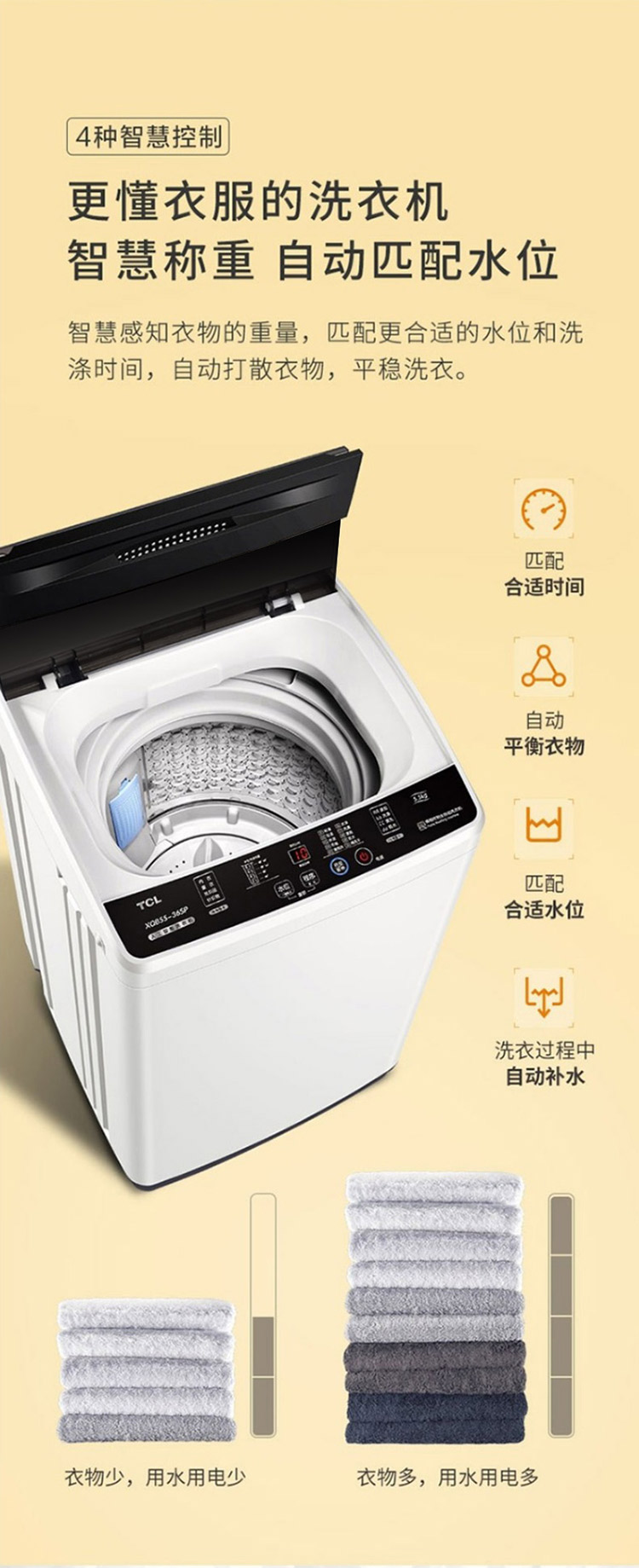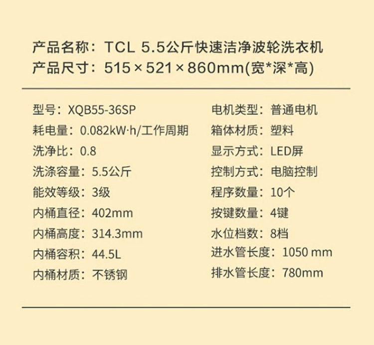 TCL 5.5KG波轮洗衣机宿舍租房神器小型迷你全自动洗衣机 一键脱水