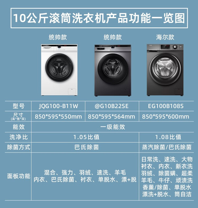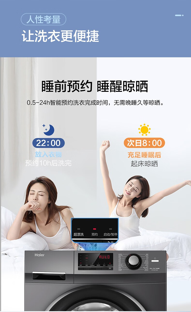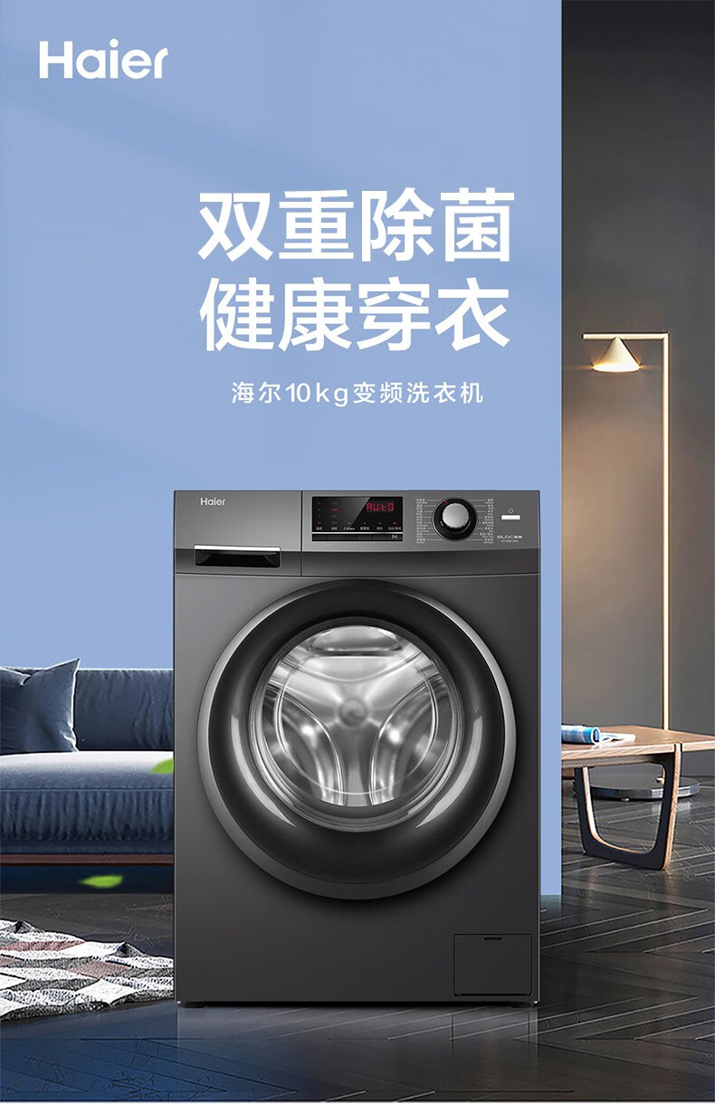 海尔洗衣机全自动滚筒10公斤大容量变频节能平稳租房 10公斤星韵银+巴氏除菌洗