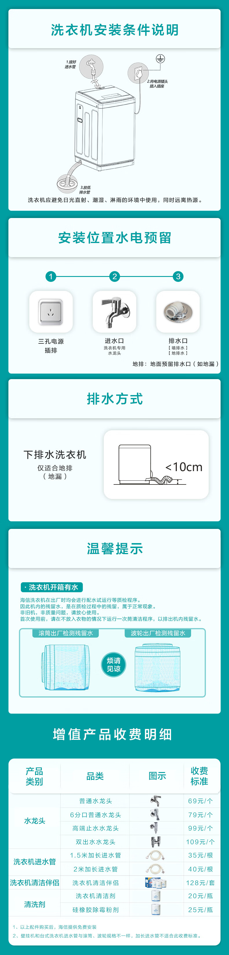 使用说明书 1套进水管组件 1套底板 1件螺钉 1枚/3枚洗衣机 1台