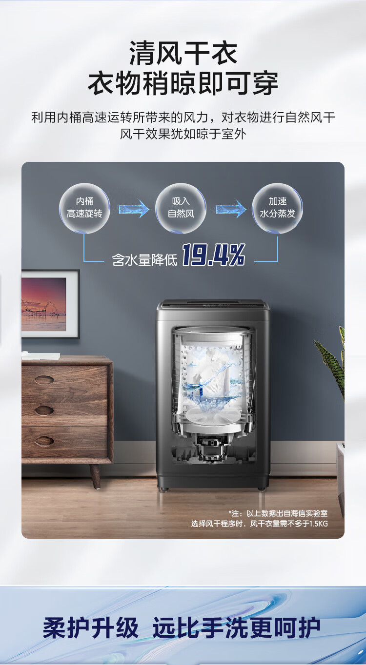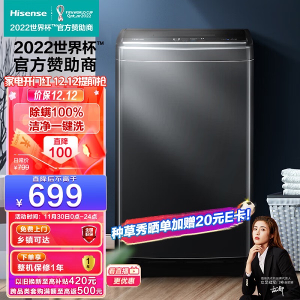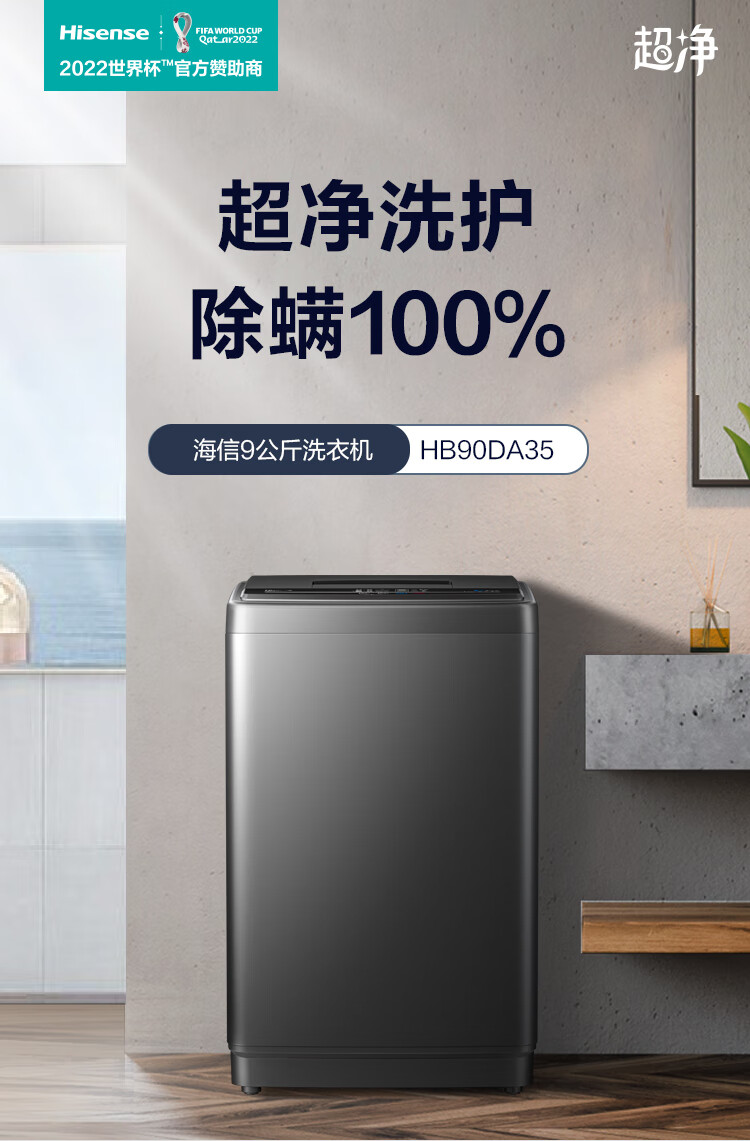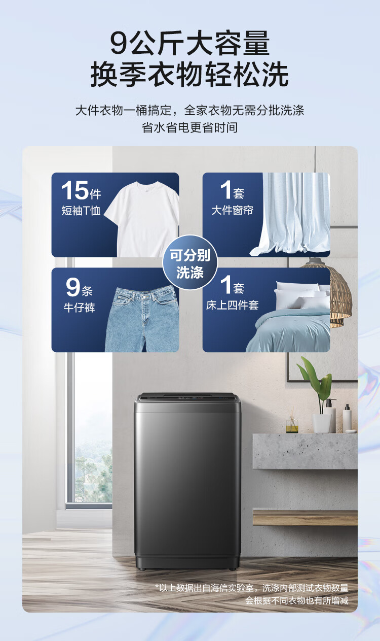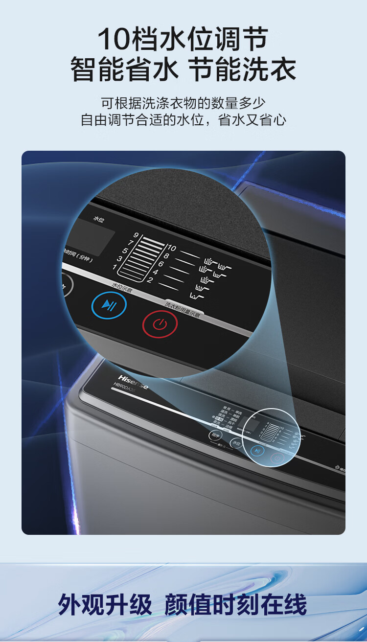 海信(Hisense)波轮洗衣机全自动 9公斤升级钛晶灰大容量 家用 出租房 宿舍