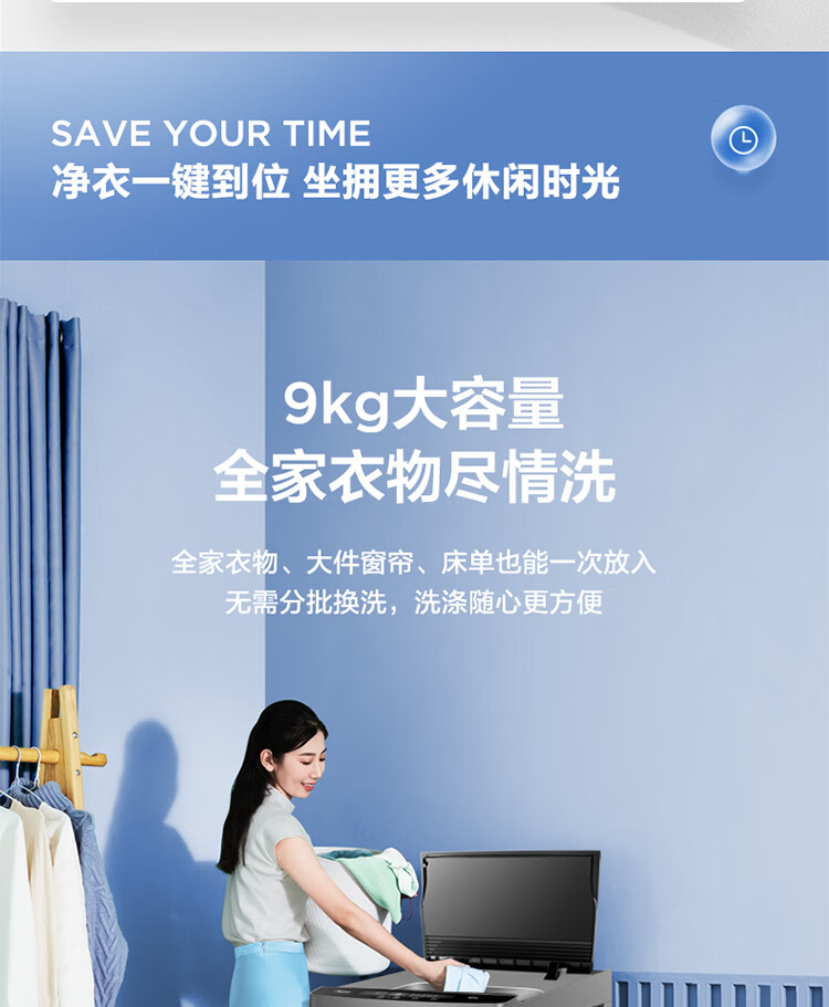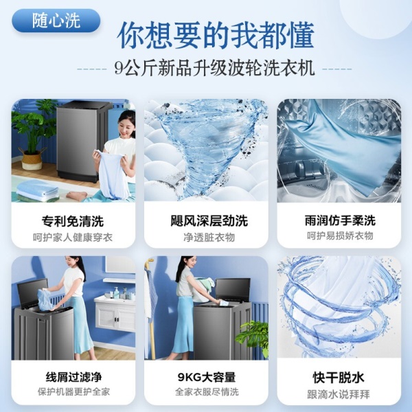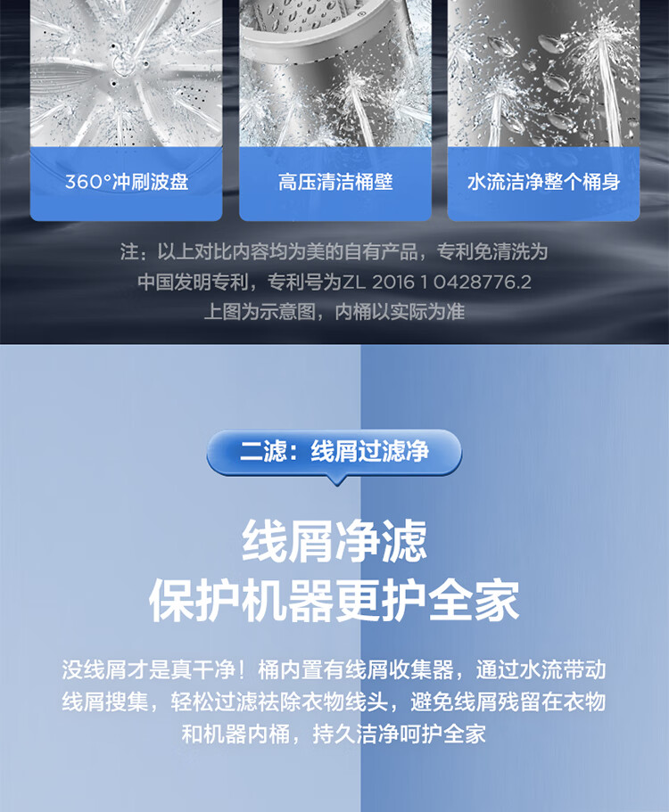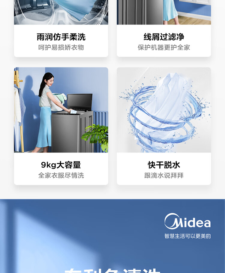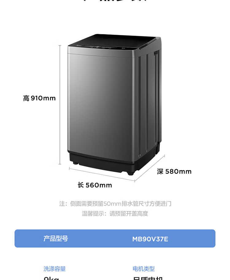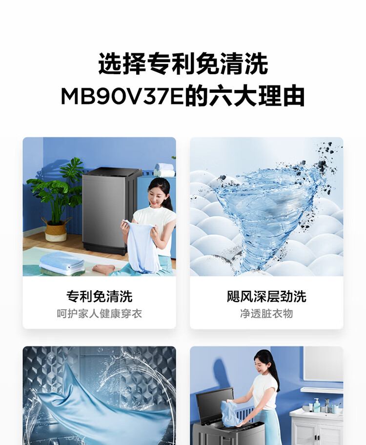 美的(Midea)波轮洗衣机全自动 9公斤大容量 专利免清洗十年桶如新 立方内桶 水电双宽MB90V37E