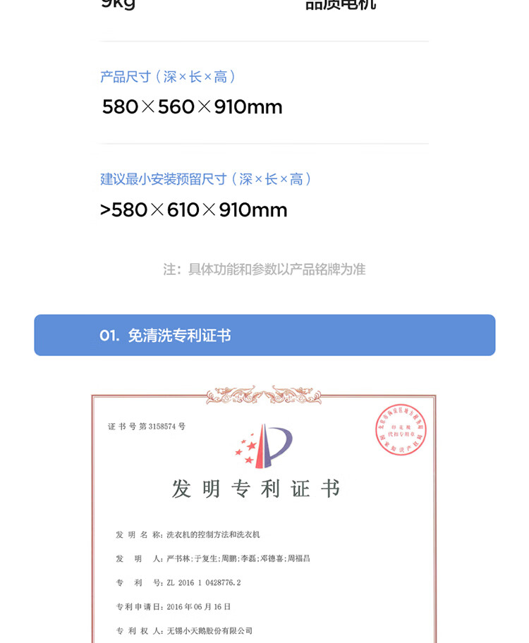 洗衣机 × 1 说明书(含保修卡) × 1 进水管 × 1