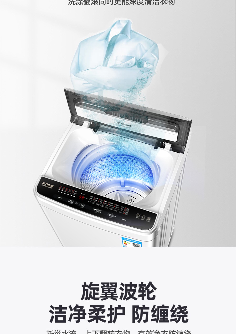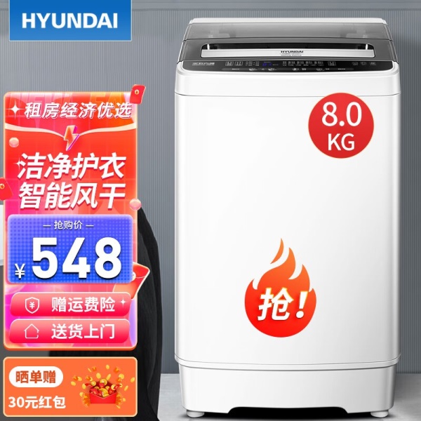 现代(HYUNDAI)8.0KG洗衣机全自动 波轮洗衣机小迷你宿舍租房小型儿童家用