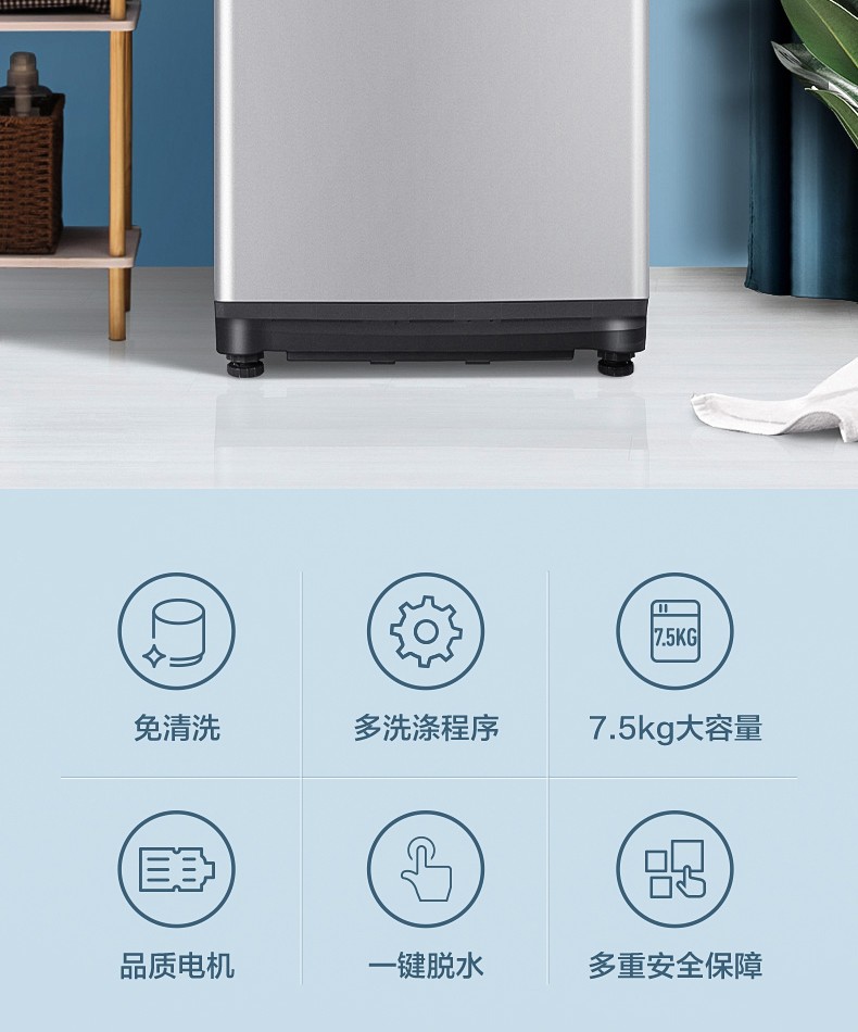 小天鹅(LittleSwan)洗衣机全自动波轮 7.5公斤京品家电小型家用翻盖脱水甩干TB75V20