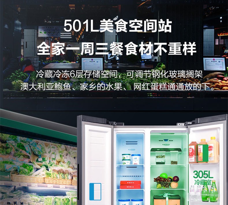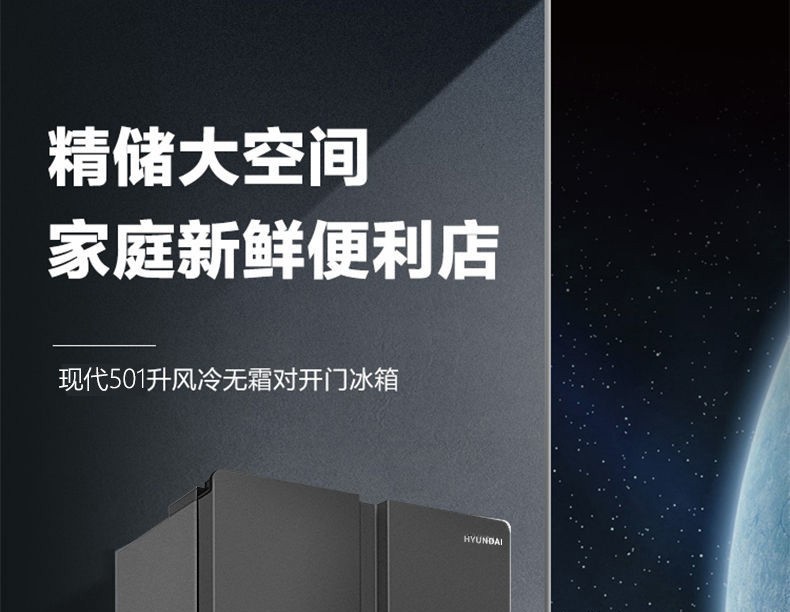 韩国(HYUNDAI)现代冰箱双开门 501升对开门家用电冰箱风冷无霜电脑温控大容量节能保鲜 501升
