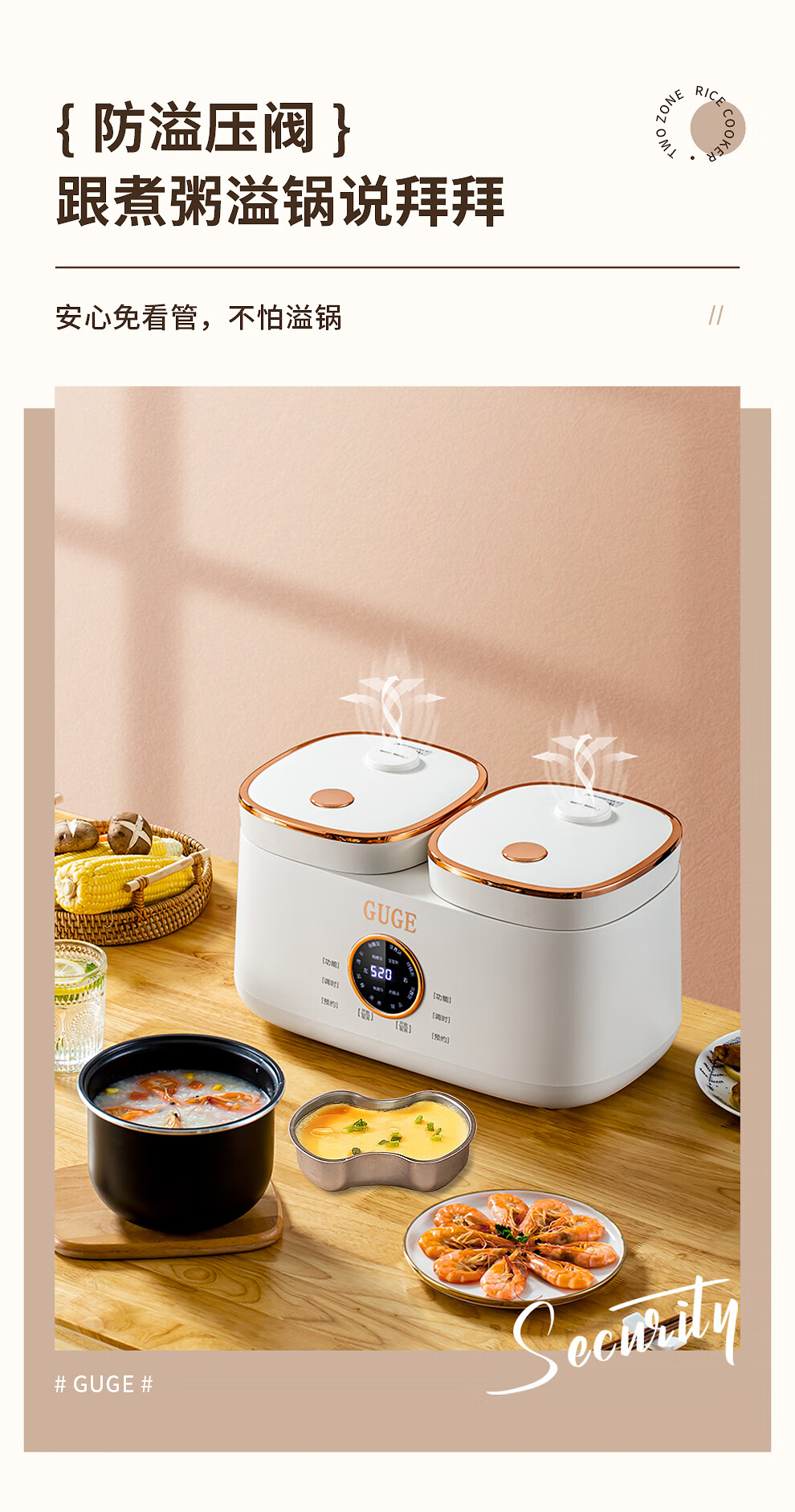 谷格(GUGE) 【双胆同时煮+饭汤两用】德国双胆电饭煲一体双拼多功能小型家用迷你4L智能微压电饭锅