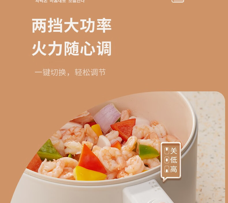 HYUNDAI 电煮锅电火锅陶瓷釉不粘煮面煎蛋电热小炒锅涮火锅宿舍锅小电锅