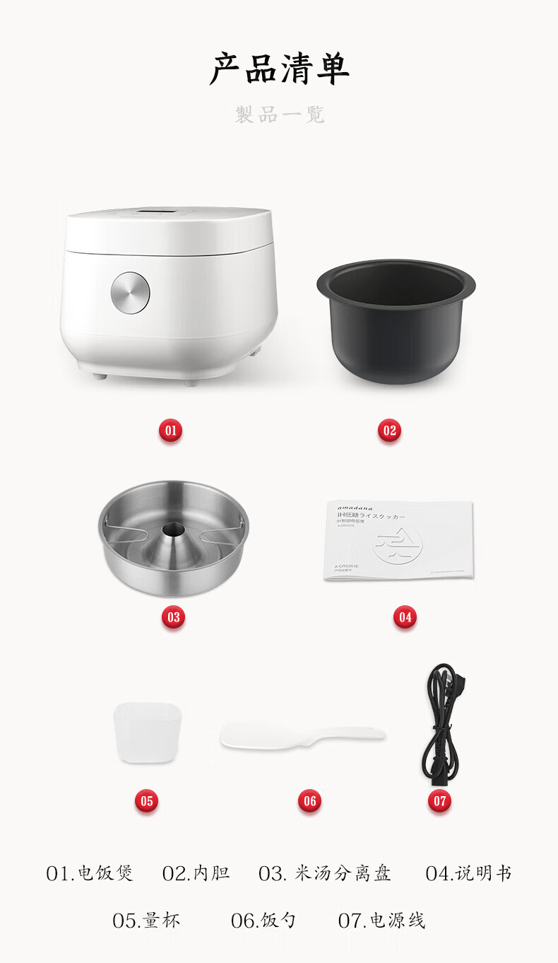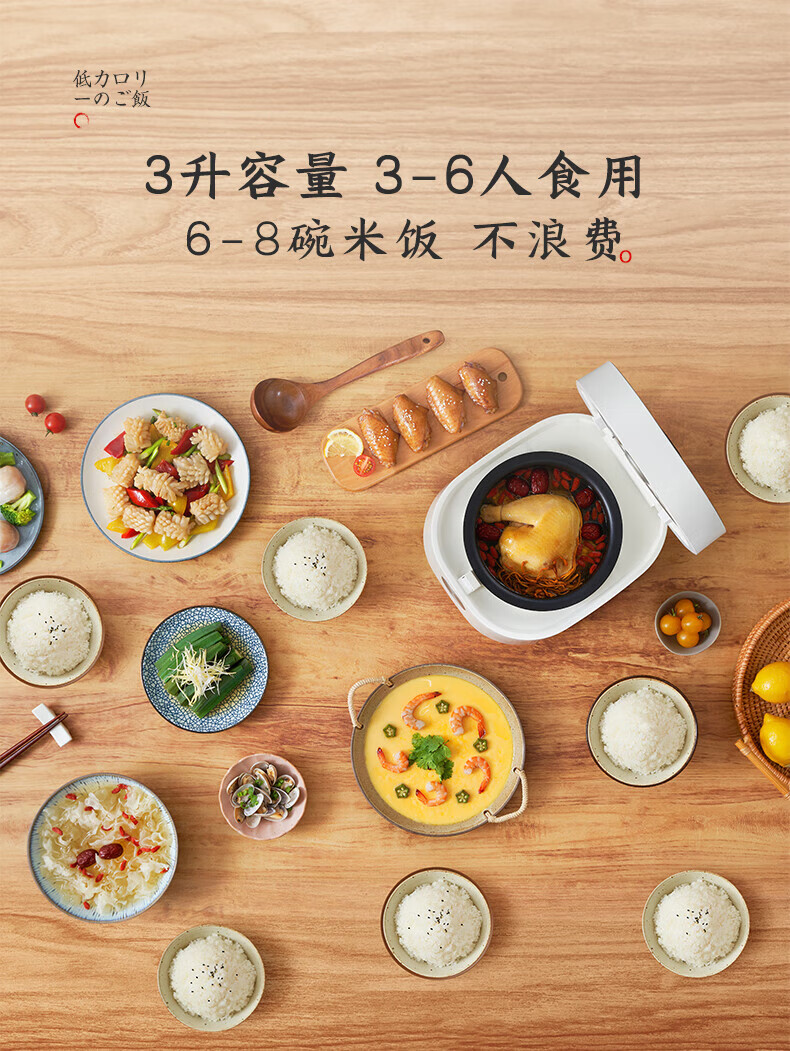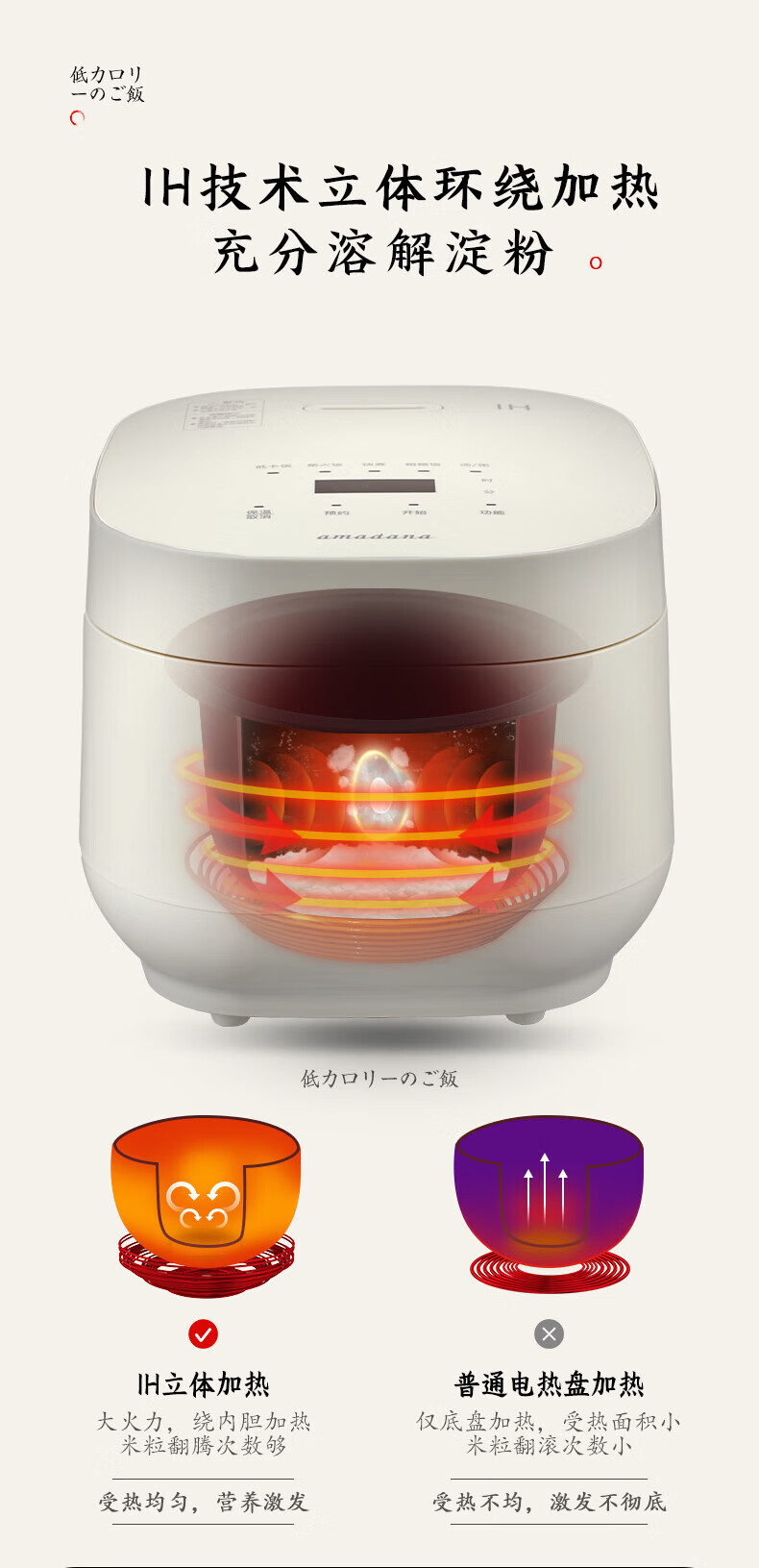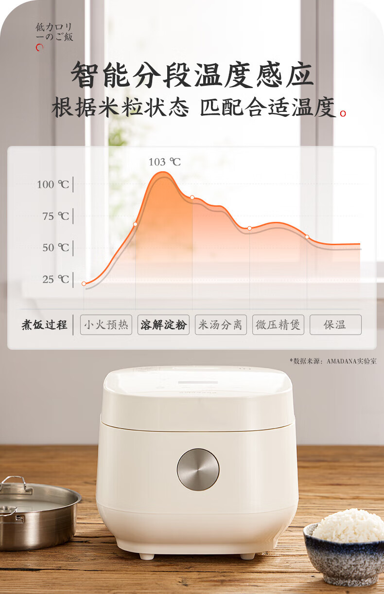 amadana 日本低糖电饭煲 减少淀粉IH蒸煮家用米汤分离电饭锅沥米饭养生智能预约多功能2L3人 新升级3L(白色)