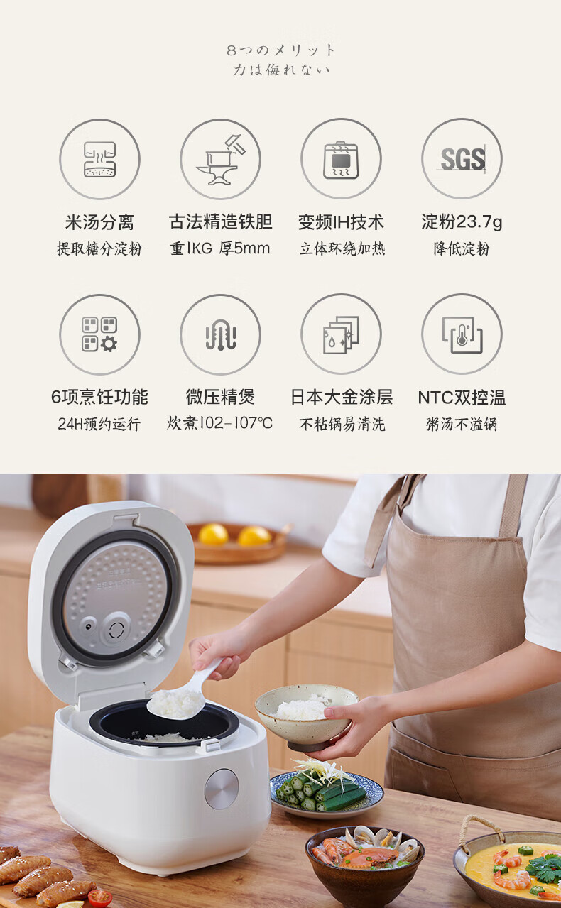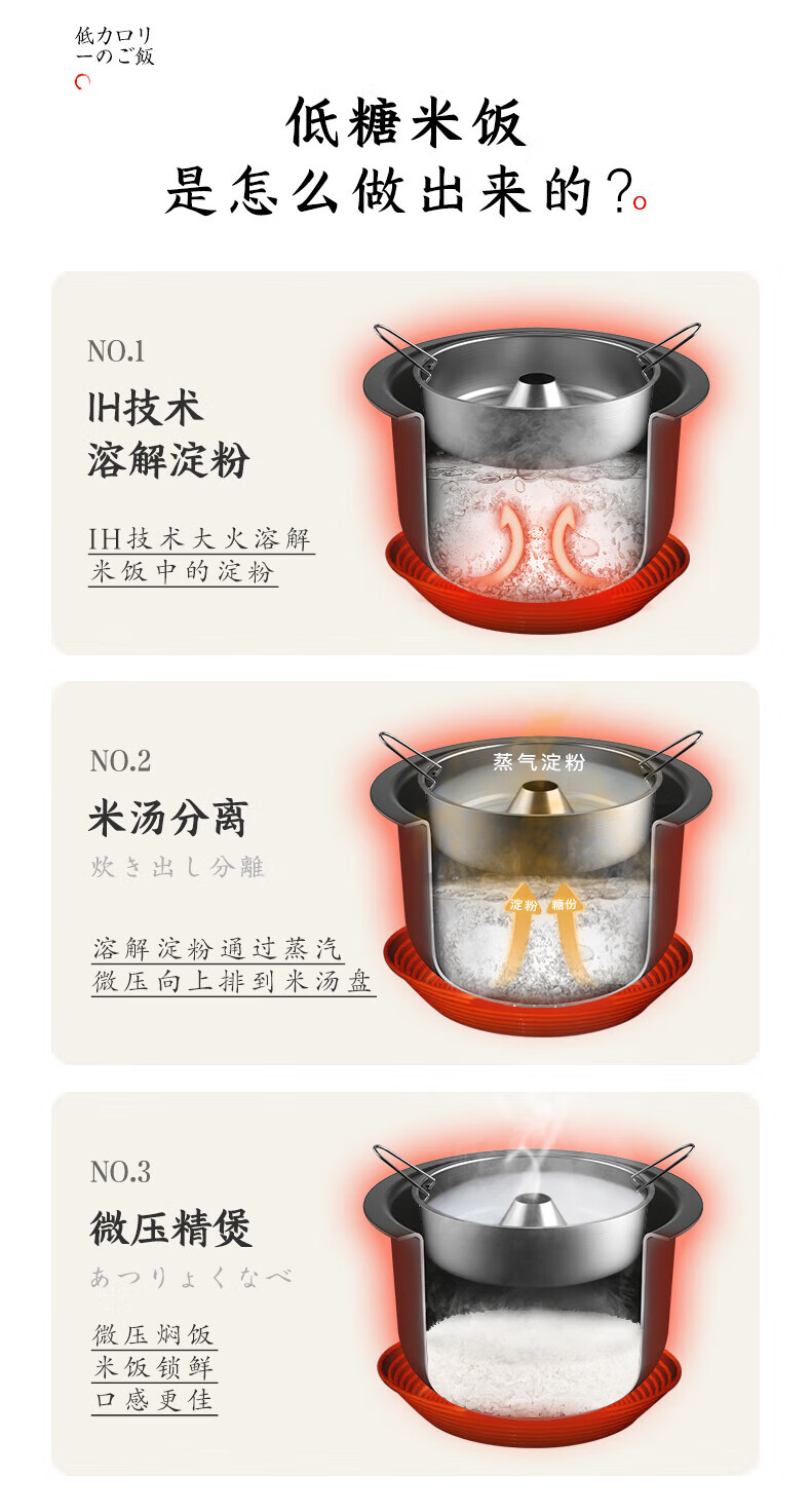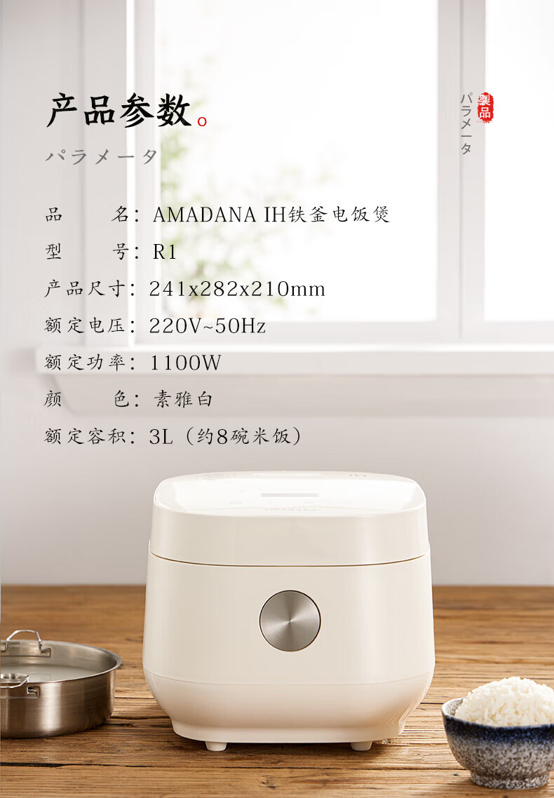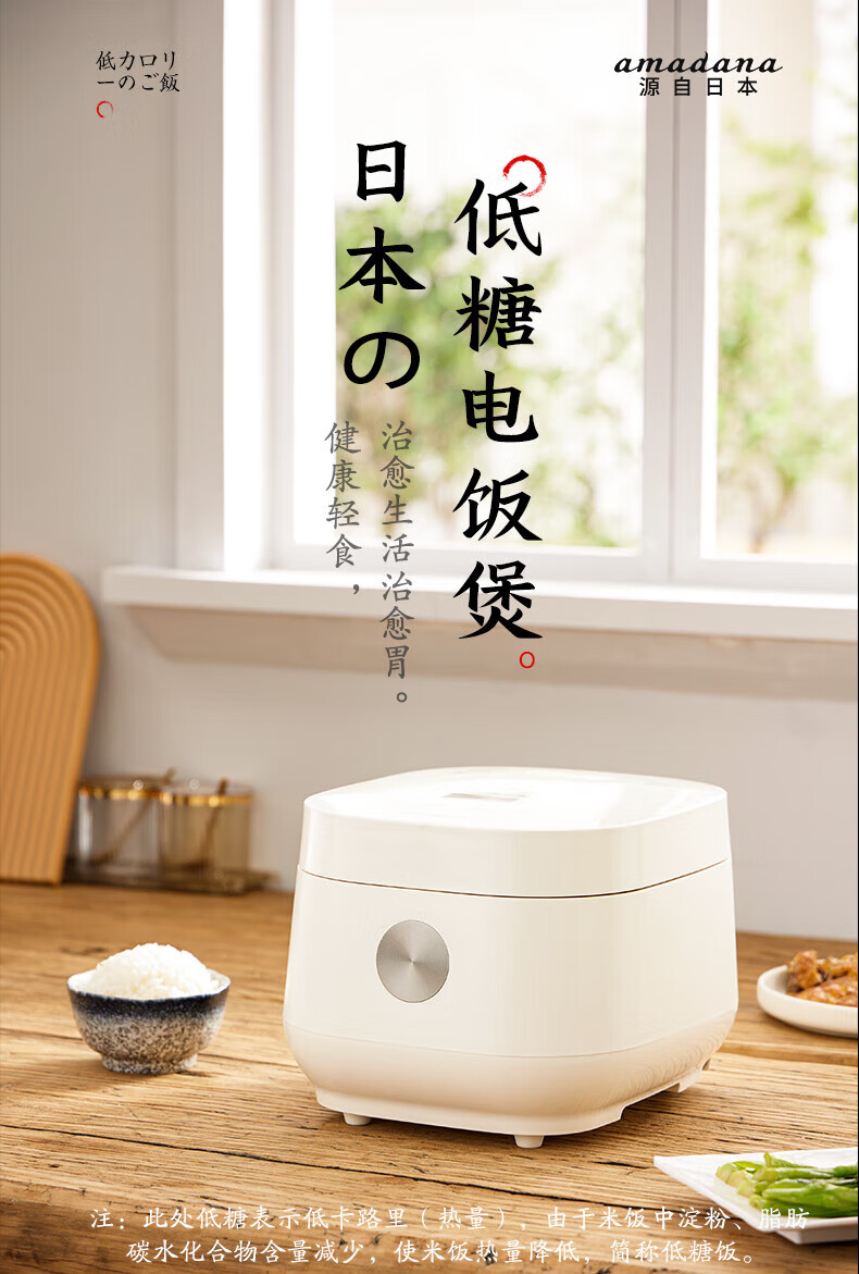 amadana 日本低糖电饭煲 减少淀粉IH蒸煮家用米汤分离电饭锅沥米饭养生智能预约多功能2L3人 新升级3L(白色)