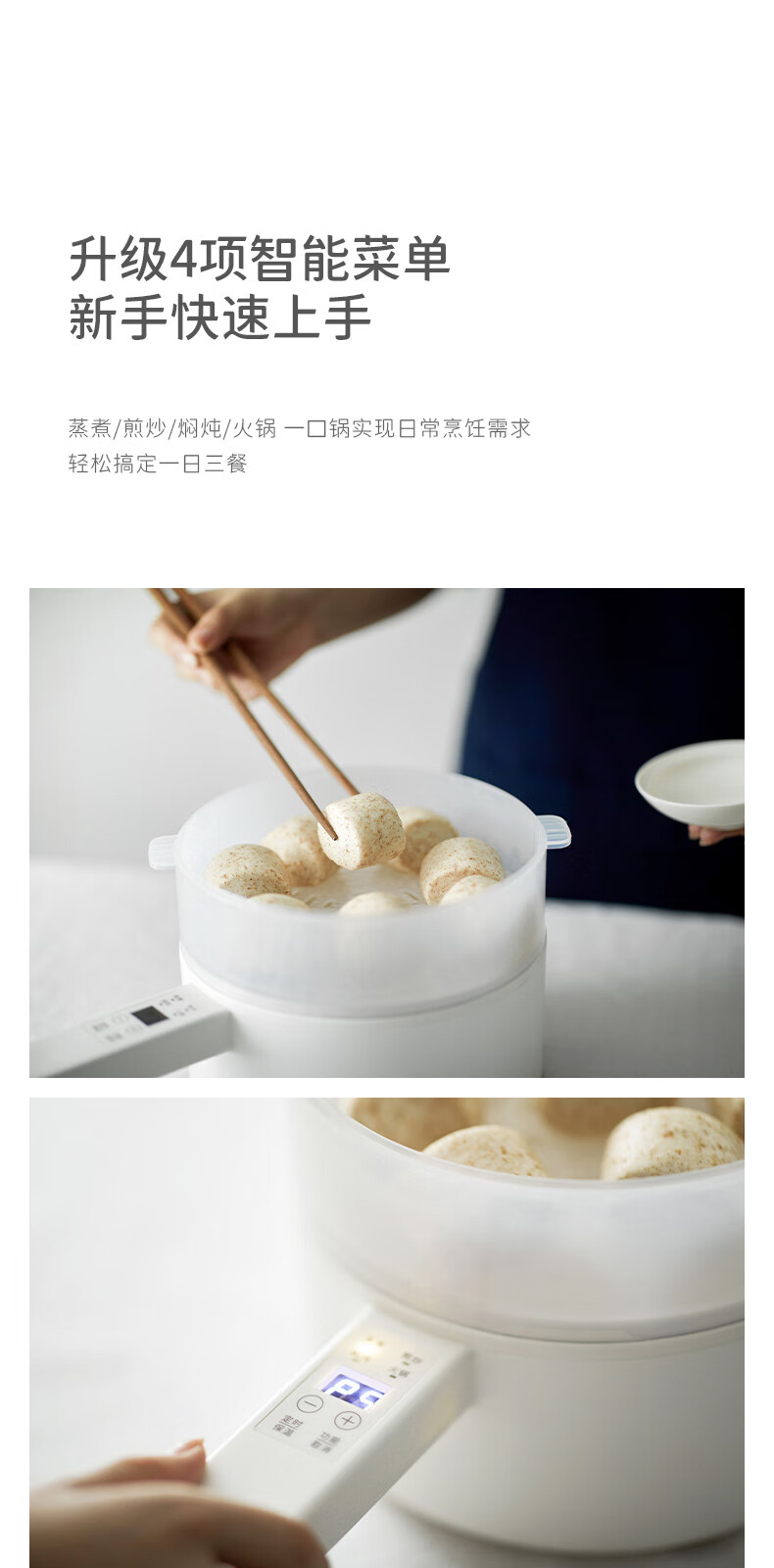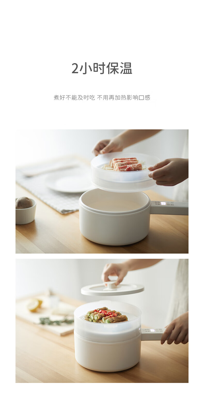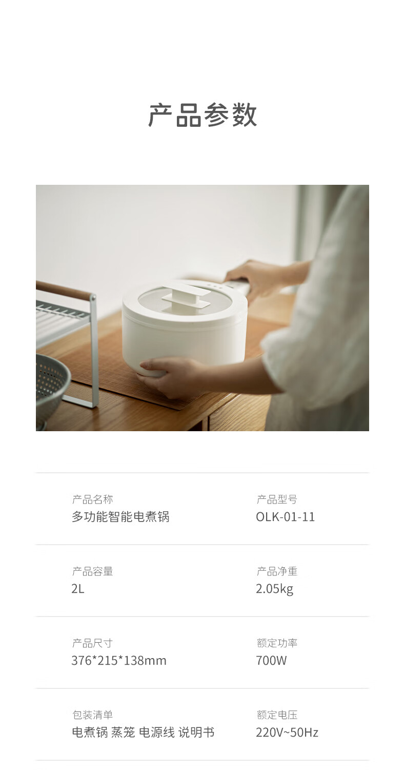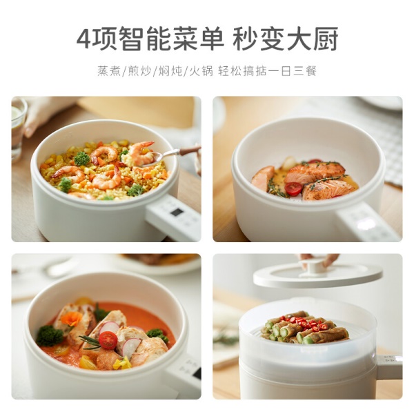 olayks出口原款2L多功能电煮锅泡面锅家用一人电火锅宿舍小锅电蒸锅煎涮单人迷你电热锅电脑款-配蒸笼