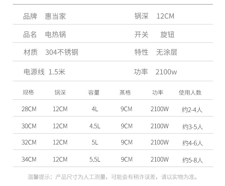 惠当家(Hui Dang Jia) 电锅电热锅电炒锅多功能电锅电蒸锅电火锅定时多用途一体锅