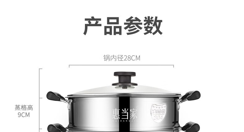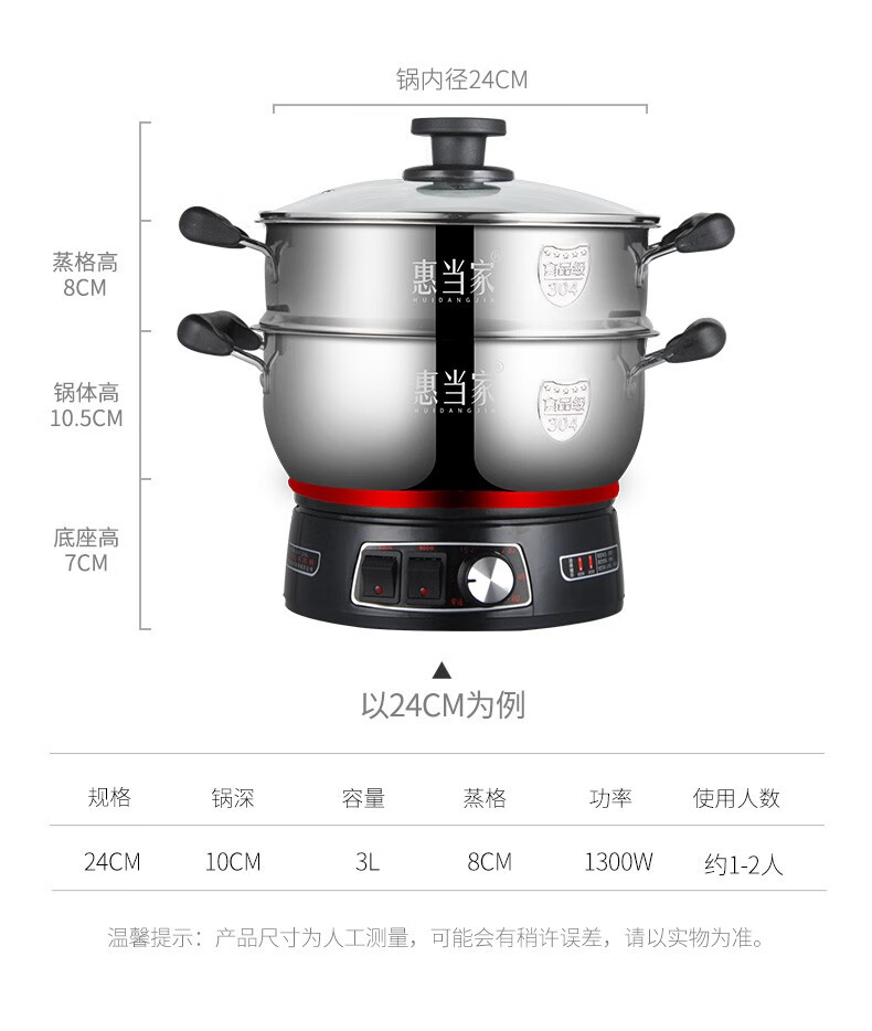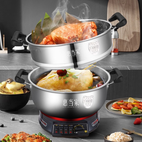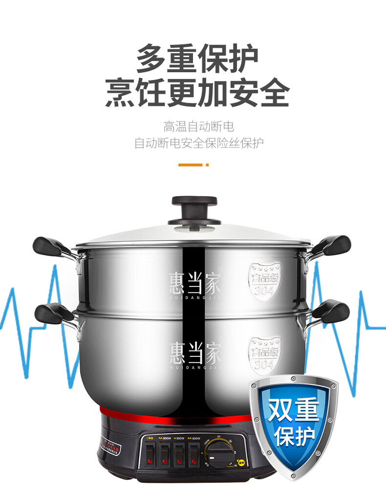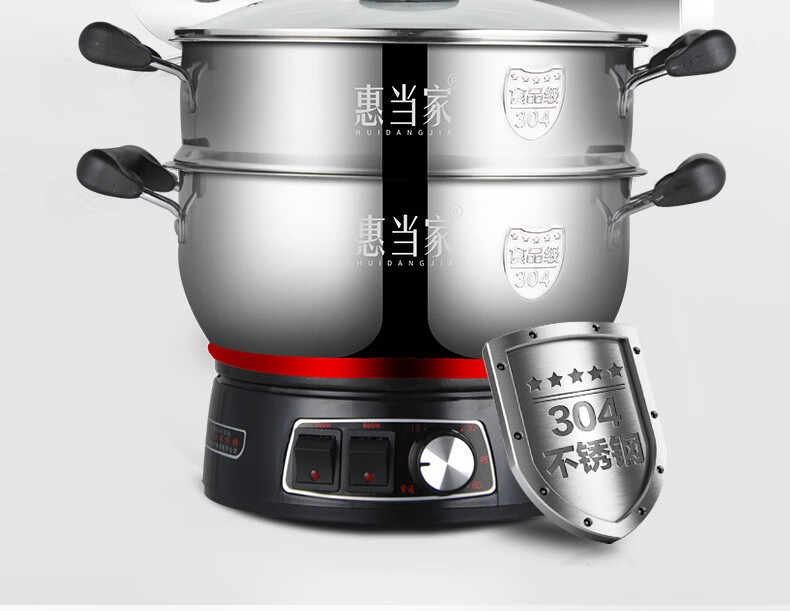 惠当家(Hui Dang Jia) 电锅电热锅电炒锅多功能电锅电蒸锅电火锅定时多用途一体锅 34cm一蒸格(全304定时款)