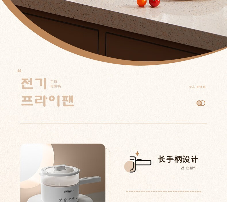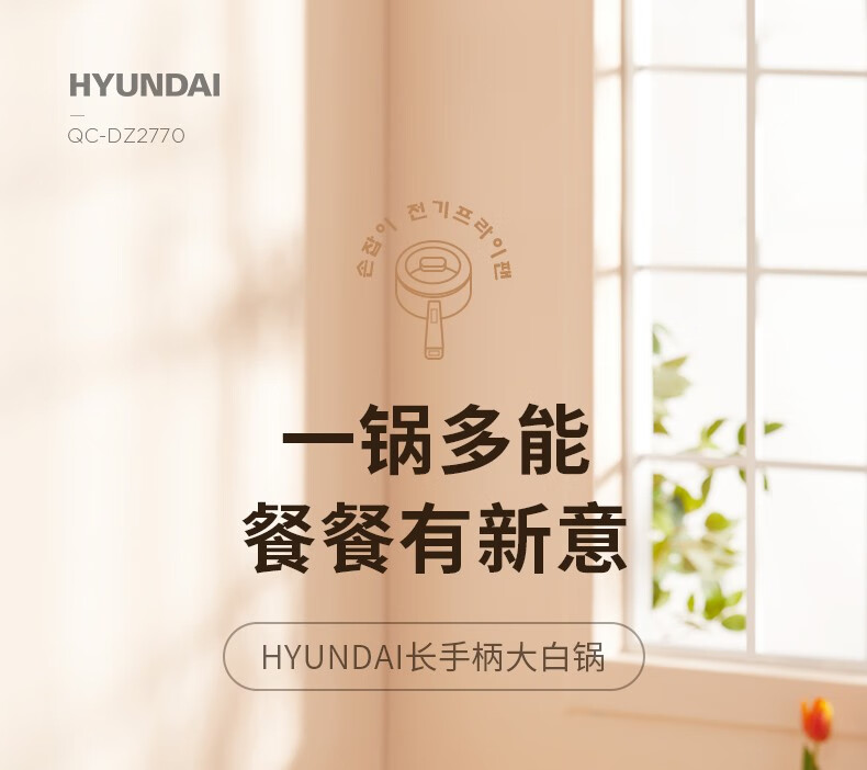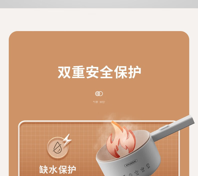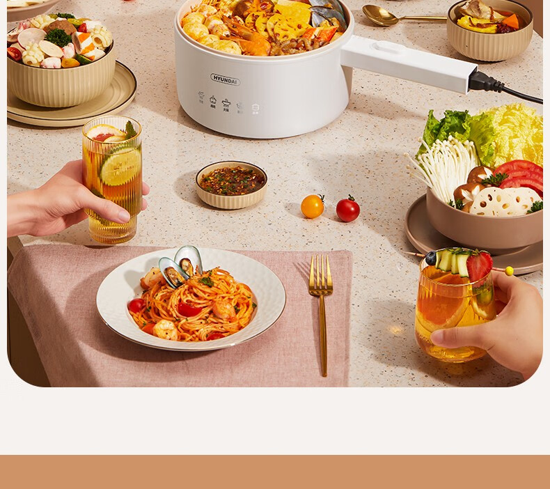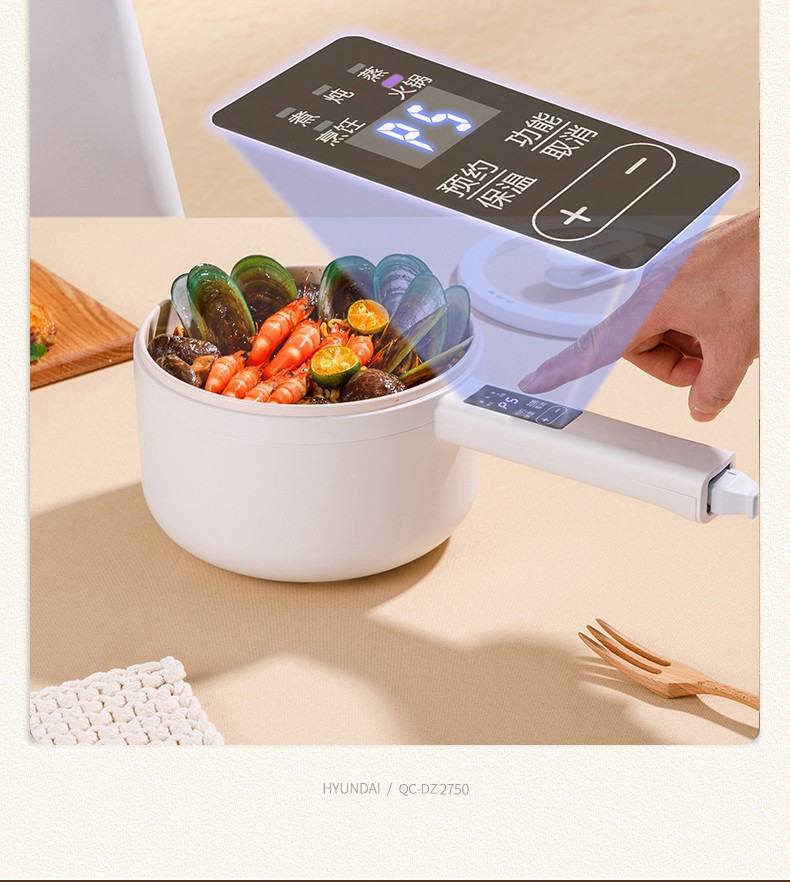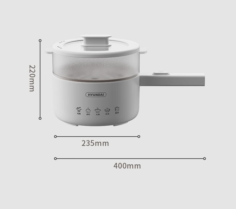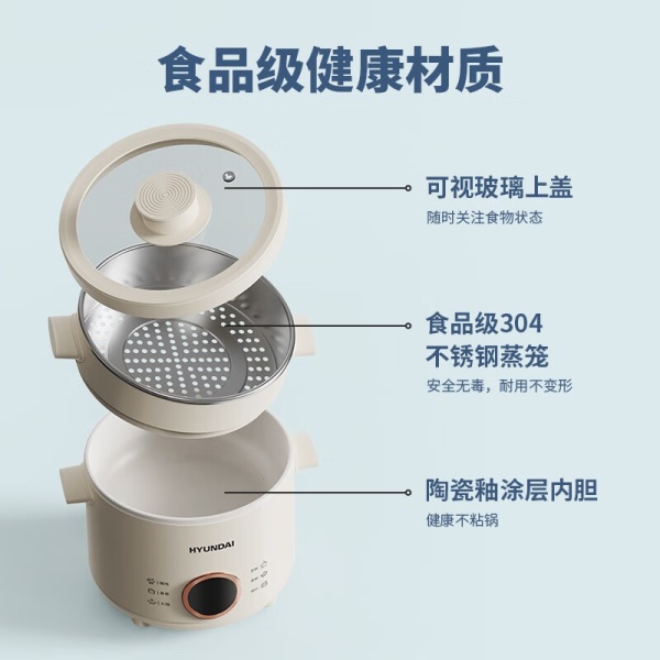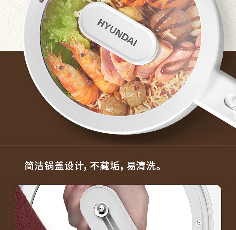 HYUNDAI 电煮锅电火锅陶瓷釉不粘煮面煎蛋电热小炒锅涮火锅宿舍锅小电锅
