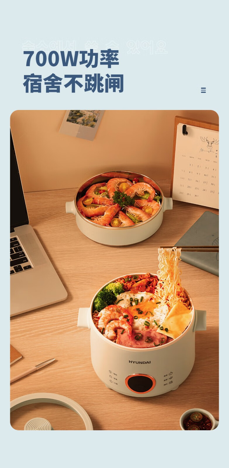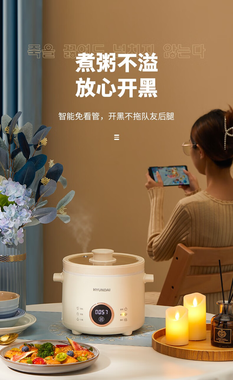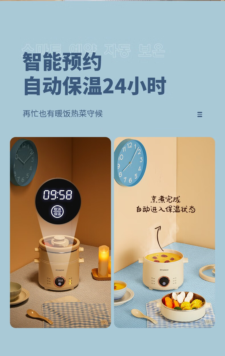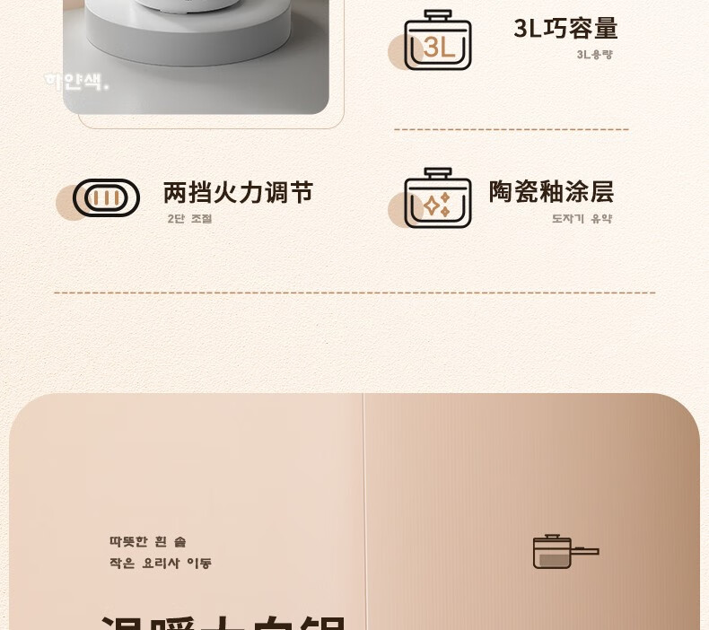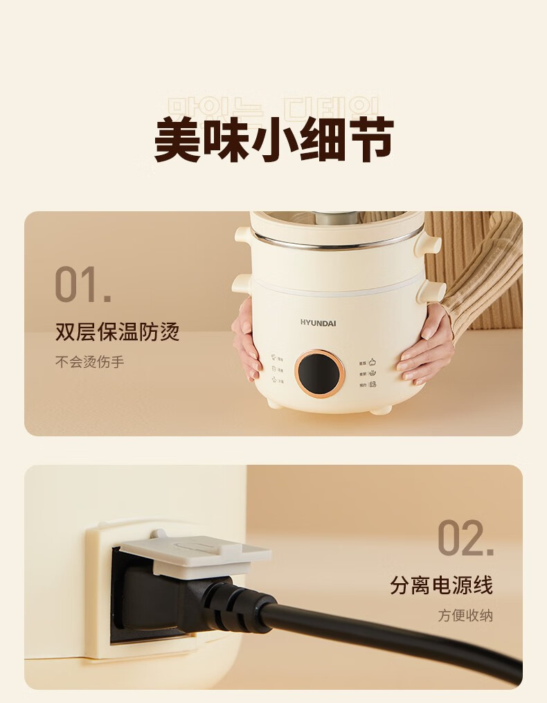 HYUNDAI 电煮锅电火锅陶瓷釉不粘煮面煎蛋电热小炒锅涮火锅宿舍锅小电锅