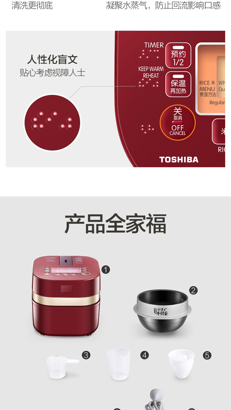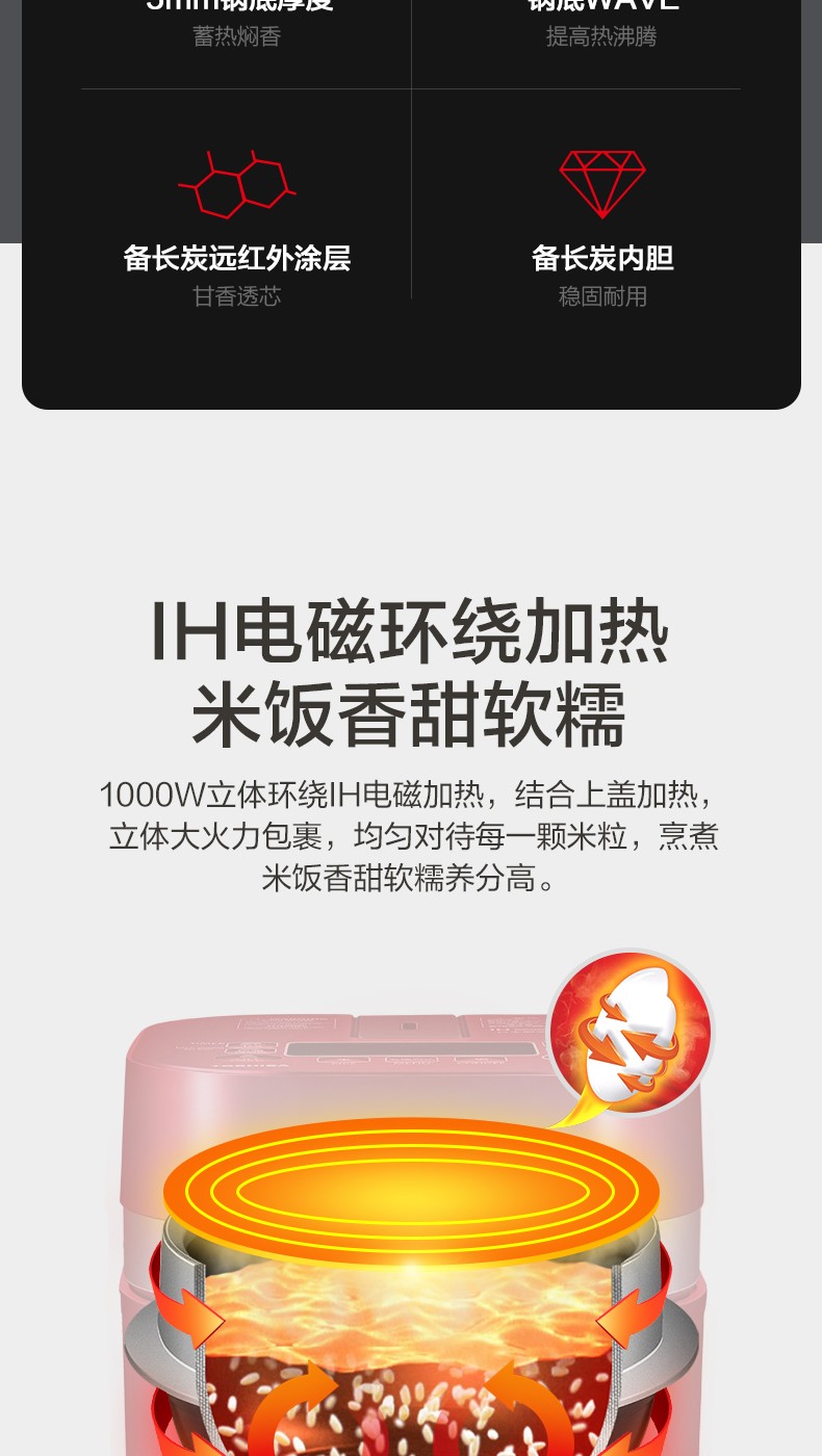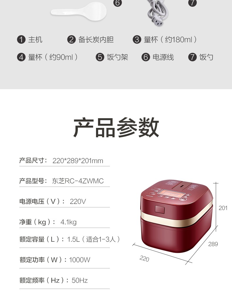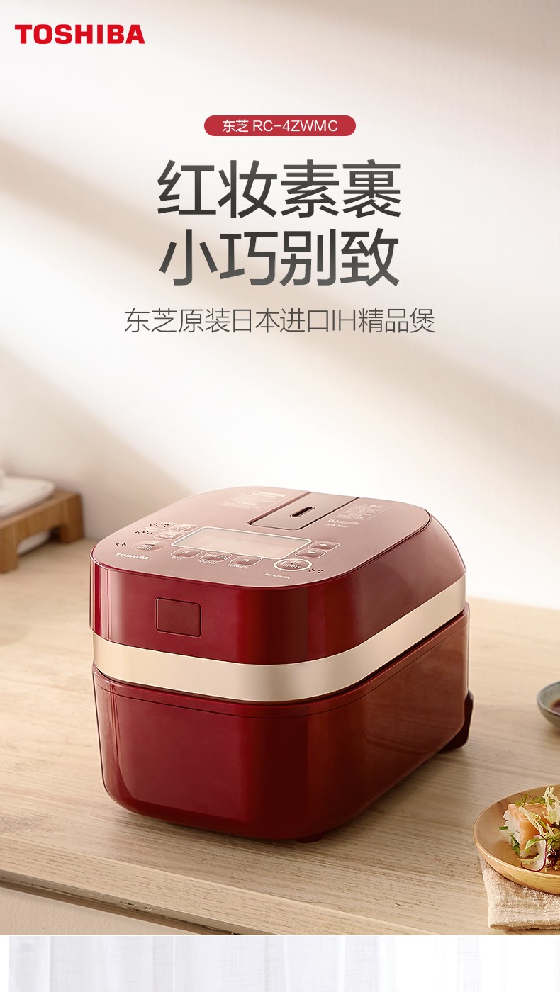 东芝(TOSHIBA) 日本原装进口迷你ih电饭煲小2人1.5升鲜饭煲智能电饭锅备长炭本羽釜煮饭锅 RC-4ZWMC