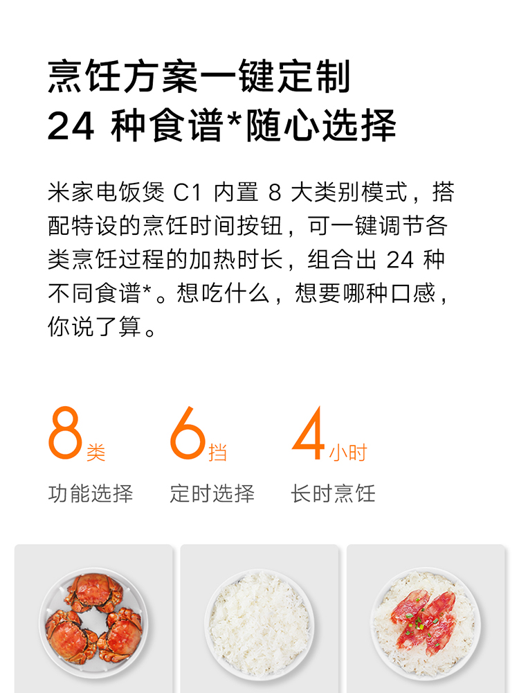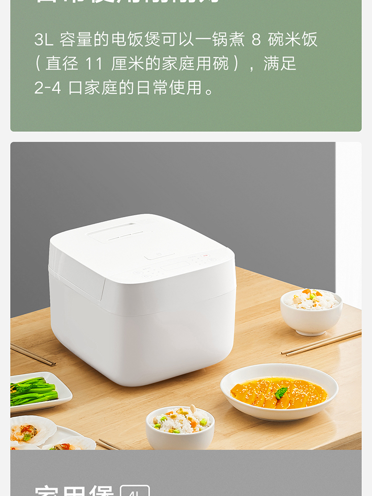 米家 小米电饭煲3L 电饭锅C1 迷你电饭煲小 24H智能预约 附蒸屉(推荐2-5人) 米家电饭煲C1 3L