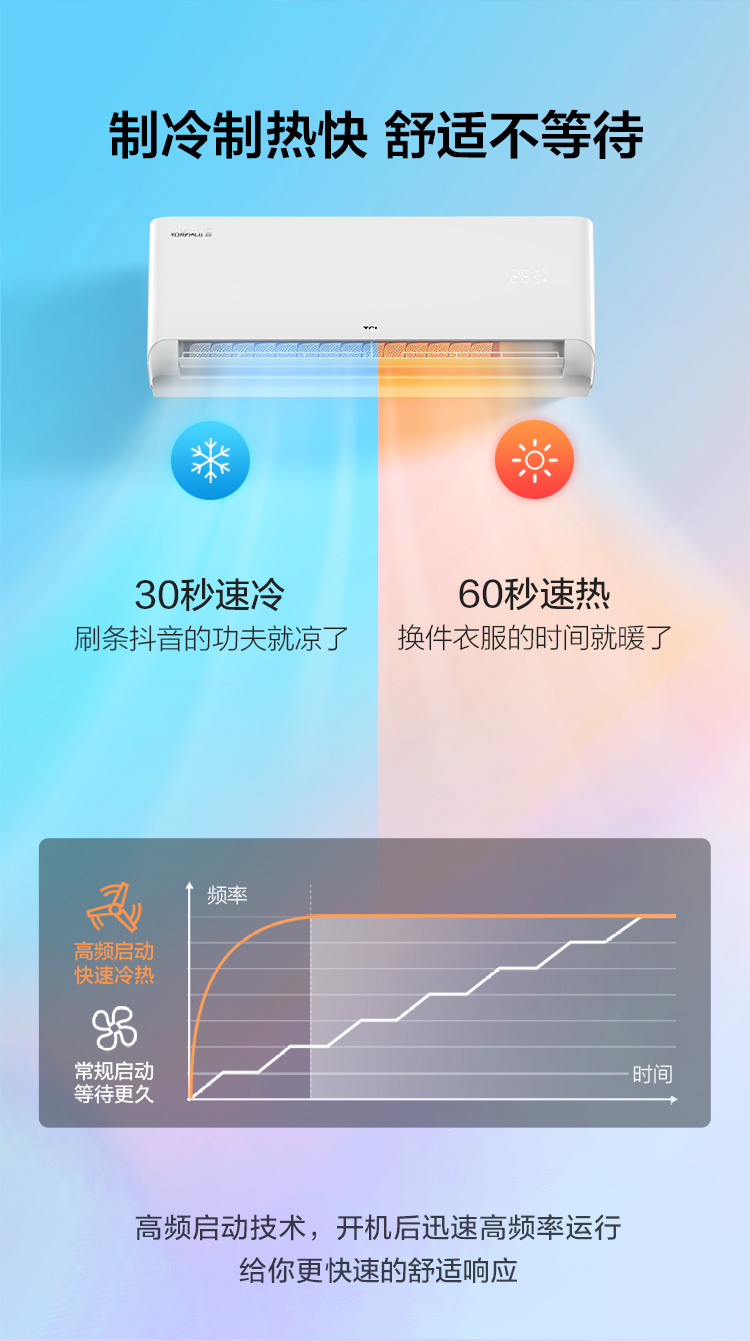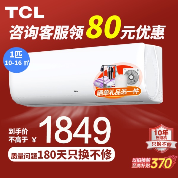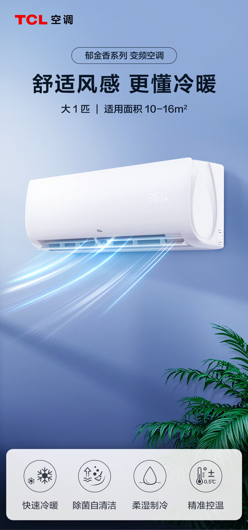 京品家电TCL空调挂机大一匹大1.5匹p变频冷暖自清洁家用卧室壁挂式空调节能省电租房挂机空调以旧换新