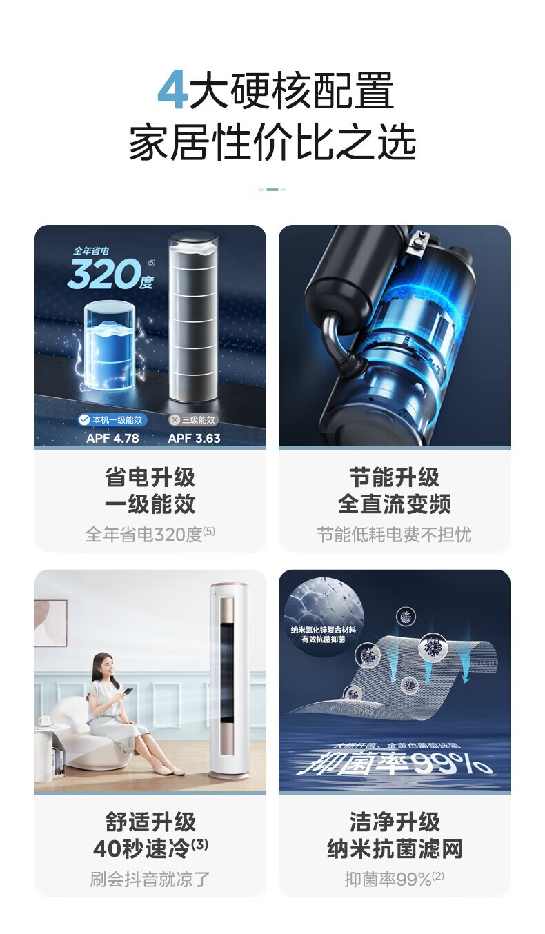 美的(Midea)空调2匹/3匹 风酷新一级能效 变频冷暖 智能家电 自清洁 客厅圆柱空调立式柜机