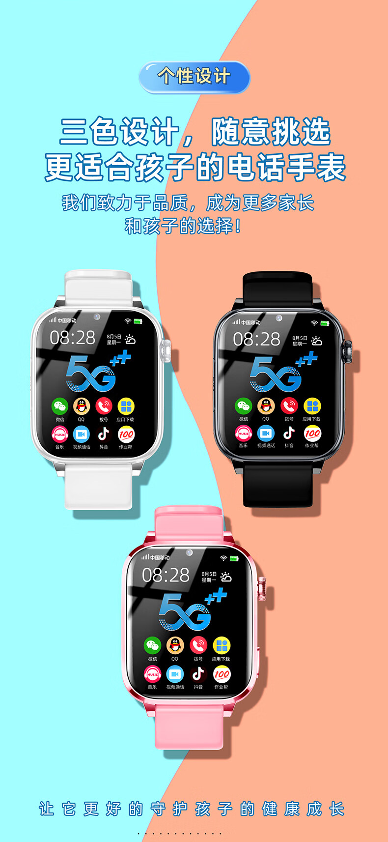 e路相伴 天才儿童电话手表小学生触屏拍照防摔360度防水插卡精准定位5G电信全网通男孩女智能拍照手表