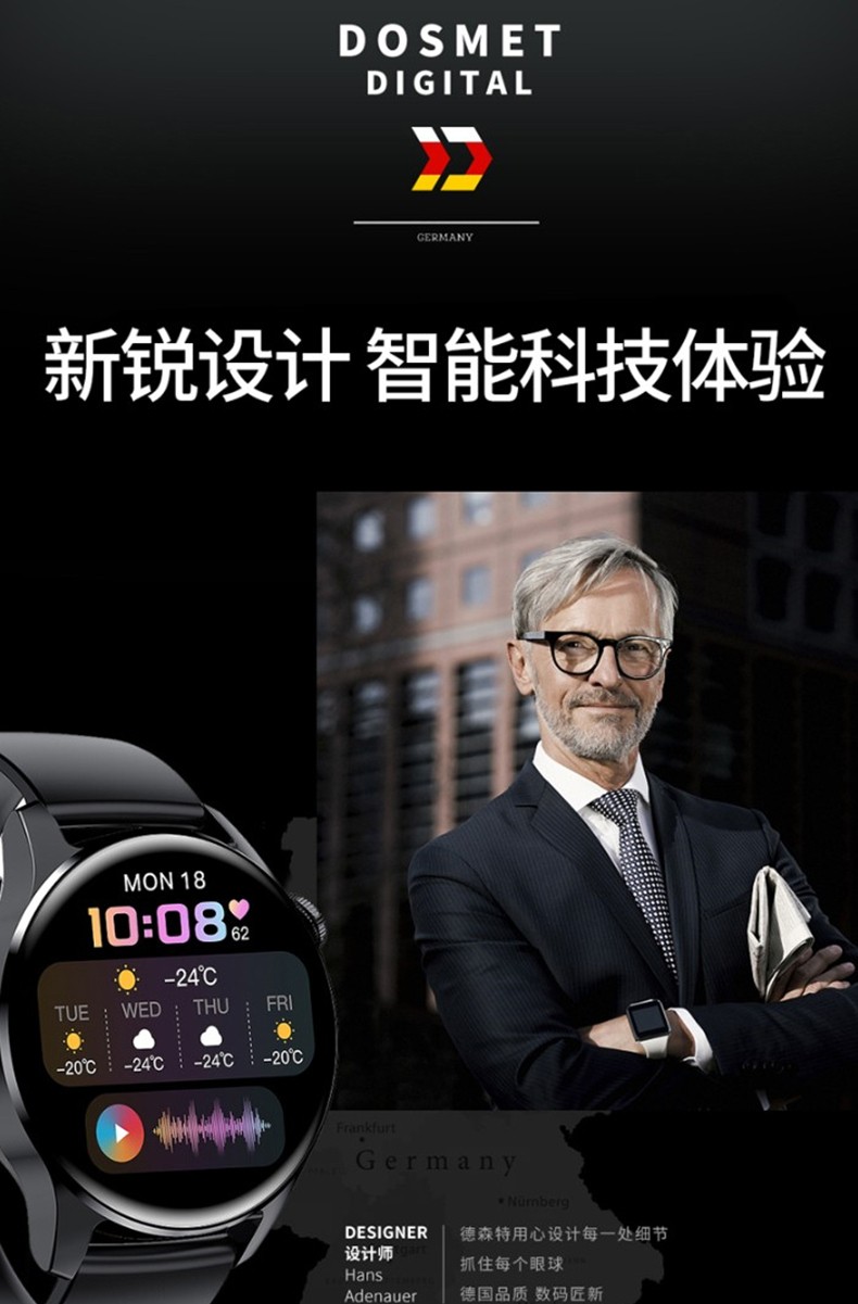 华(HUAWEl)为 通用新智能DOSMET德国品质智能手表男太空人蓝牙通话运动手表血压心率学生国表