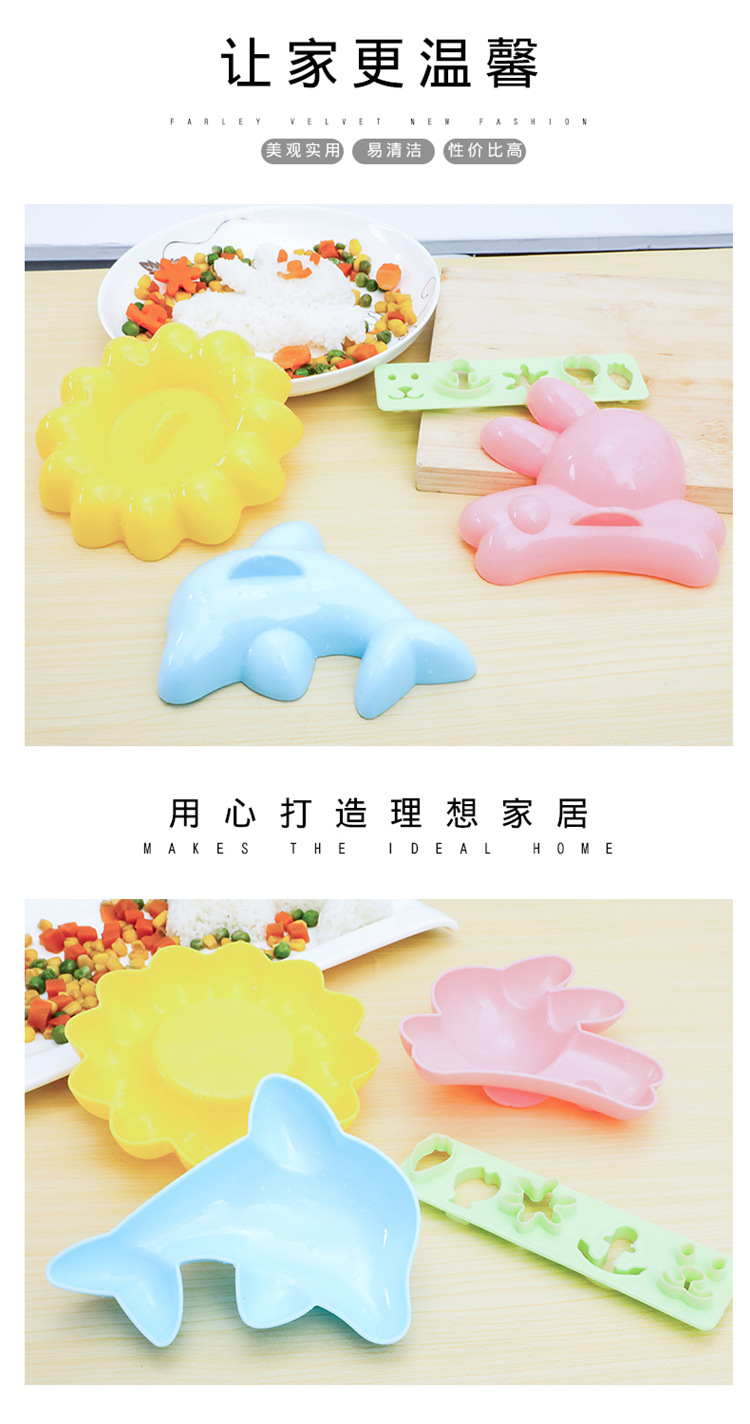 DIY饭团模具宝宝辅食动物压花便当工具 卡通可爱模具四件套