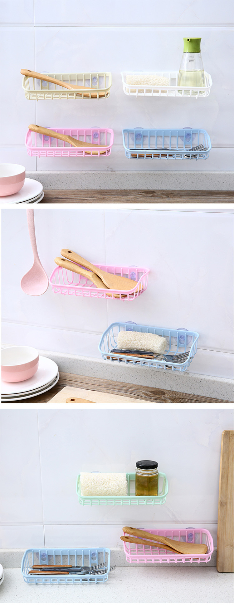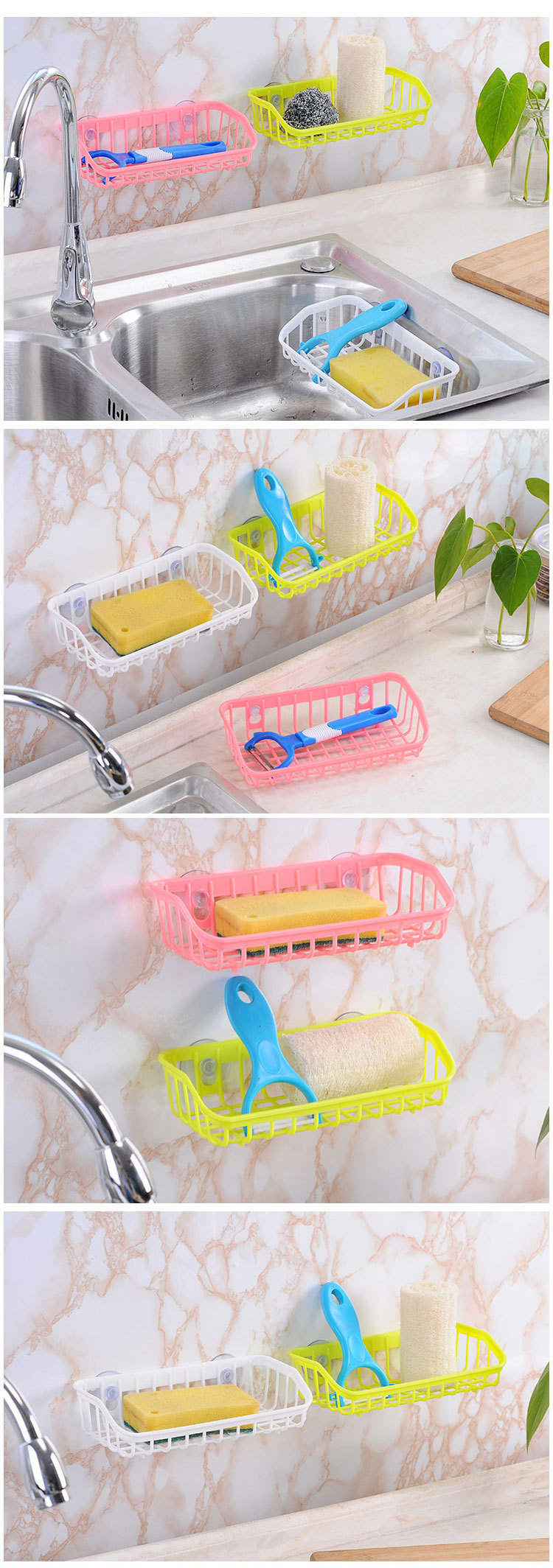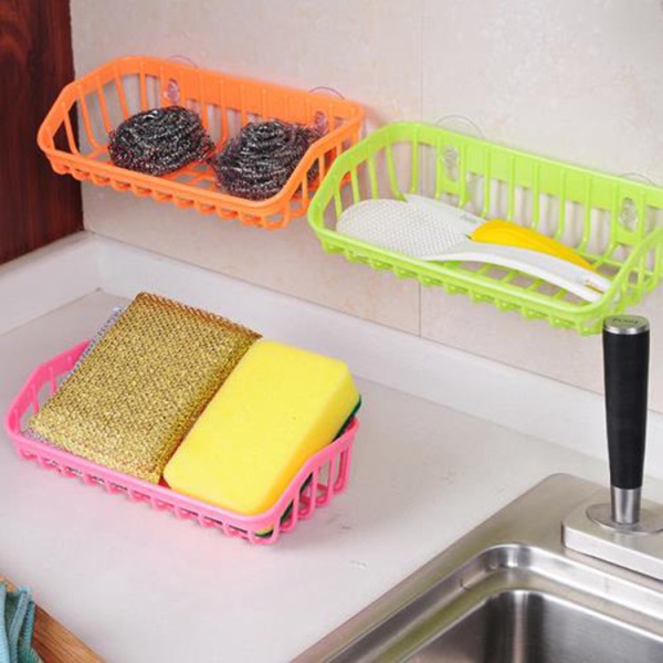 双吸盘厨房沥水篮置物架 家用洗碗海绵收纳架 餐具杂物储物架