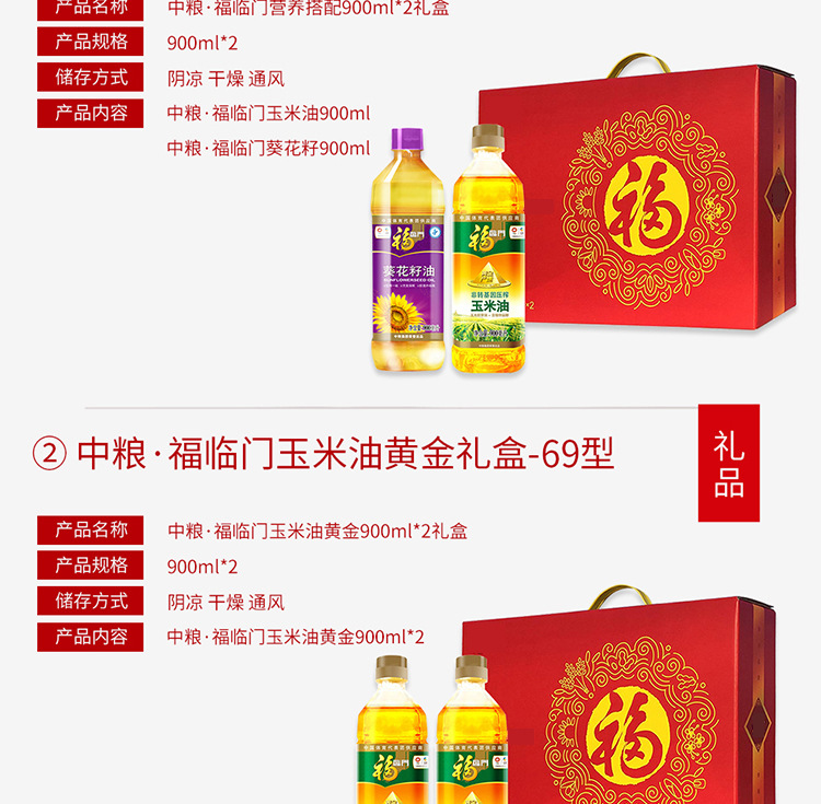 中粮福临门营养搭配900ml*2礼盒食用油员工福利团购