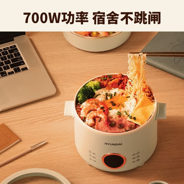 HYUNDAI 电煮锅电火锅陶瓷釉不粘煮面煎蛋电...