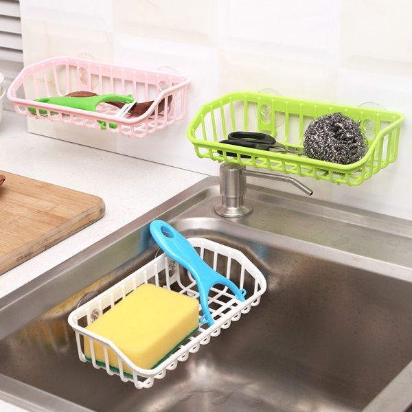 6双吸盘厨房沥水篮置物架 家用洗碗海绵收纳架 餐具杂物储物架