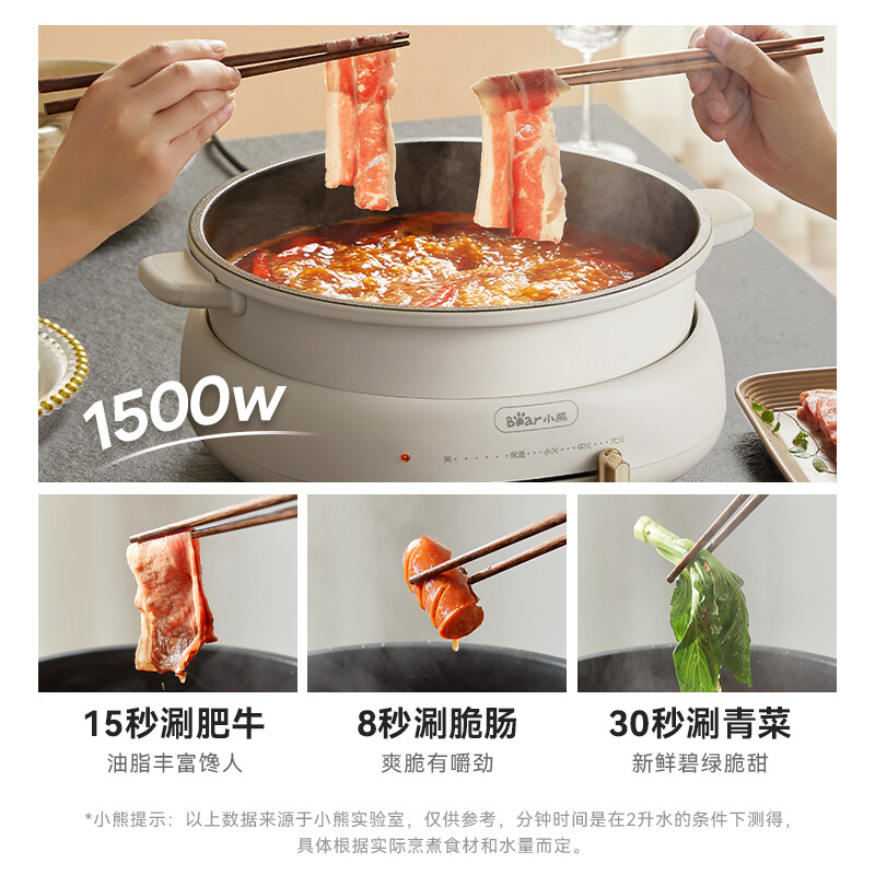 小熊(Bear) 电火锅电炒锅涮锅家用分体式多功能焖锅煎锅 大容量大功率煮煎涮烤火锅可拆锅电热锅 DHG-C40T1 可立式上盖