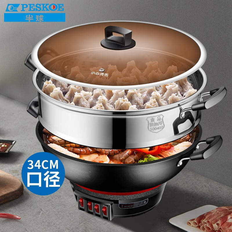半球(Peskoe)电蒸锅多用途锅电热锅 34CM电炒锅电锅