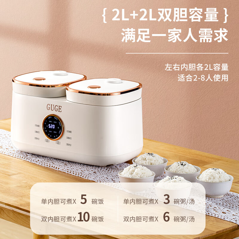 谷格(GUGE) 【双胆同时煮+饭汤两用】德国双胆电饭煲一体双拼多功能小型家用迷你4L智能微压电饭锅