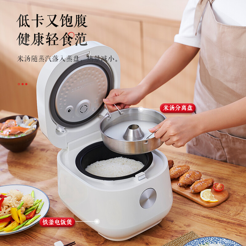 amadana 日本低糖电饭煲 减少淀粉IH蒸煮家用米汤分离电饭锅沥米饭养生智能预约多功能2L3人 新升级3L(白色)